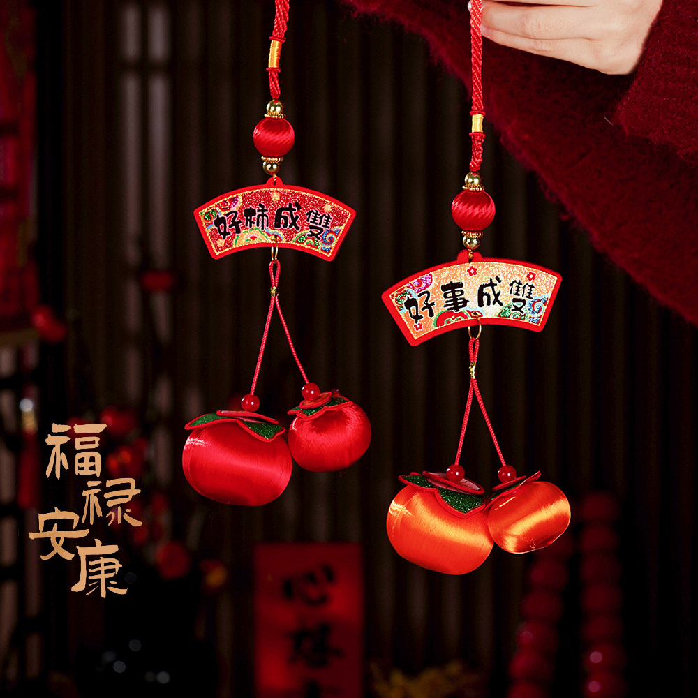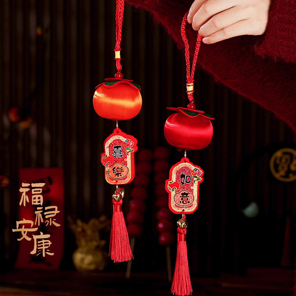 📚 马年新款开运吉祥物福包挂件过年铃铛柿子门把手挂饰客厅新房装扮