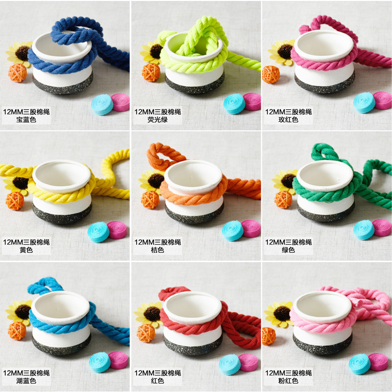 📚 12mm三股彩色粗棉绳手工diy编织辅料扭绳纯棉麻花装饰设计粗绳子