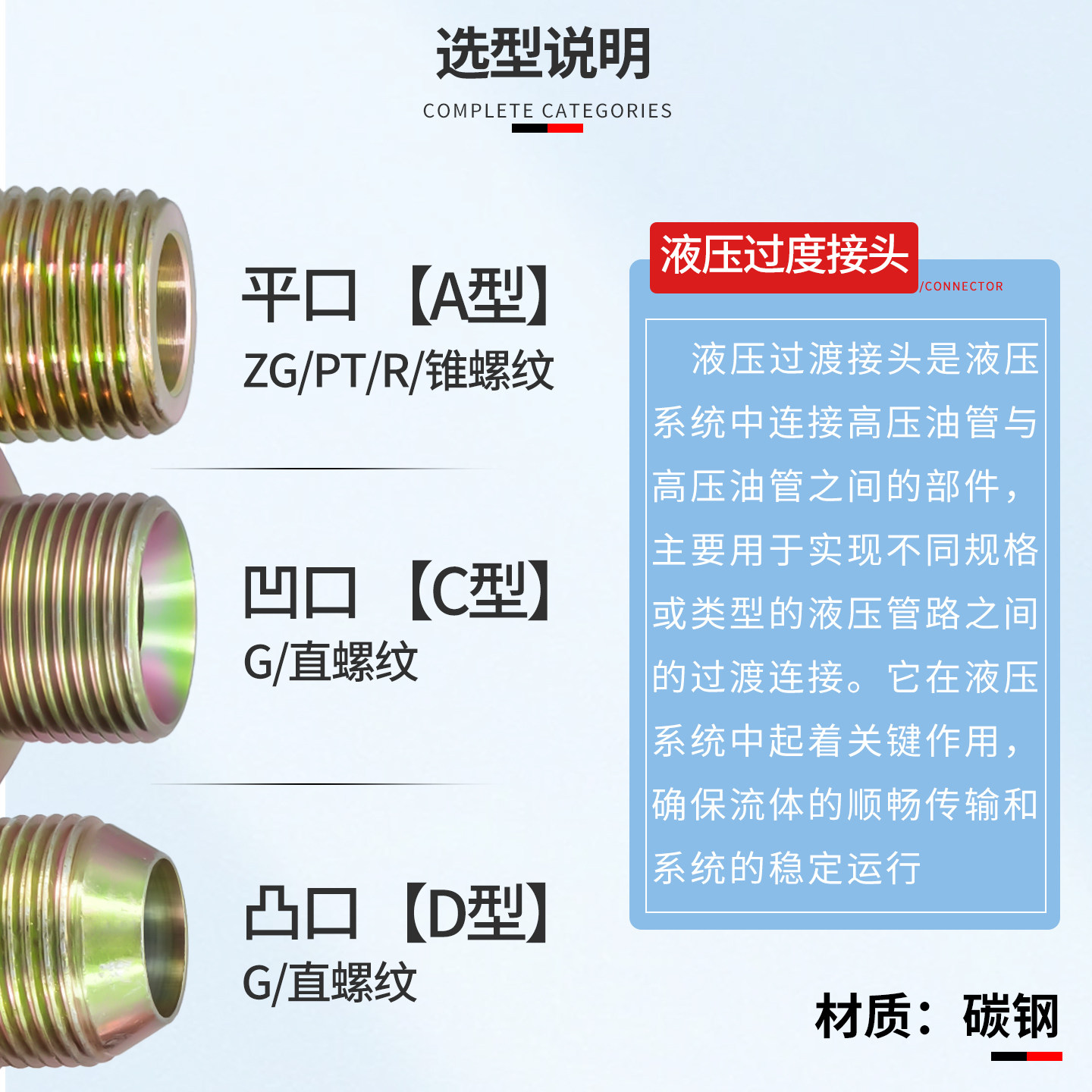 📚 高压液压油管过渡对丝/英制外丝直通A型平口1/2/3/4/6分寸管接头