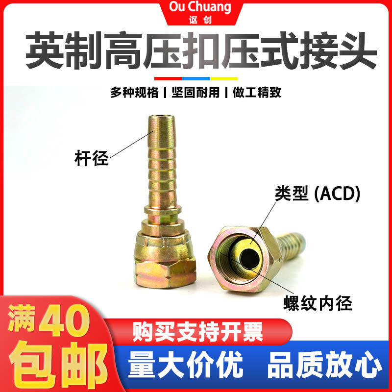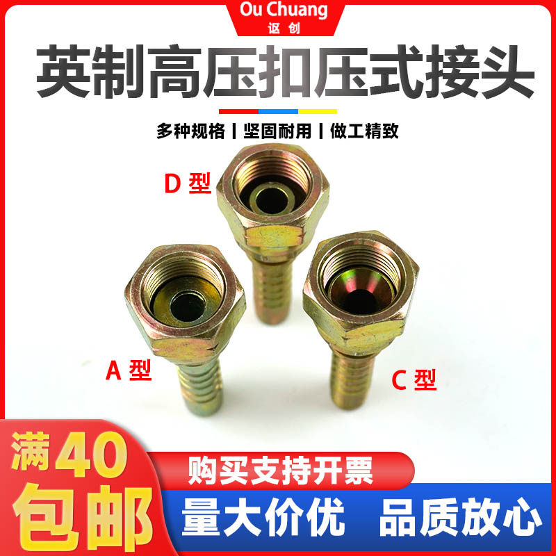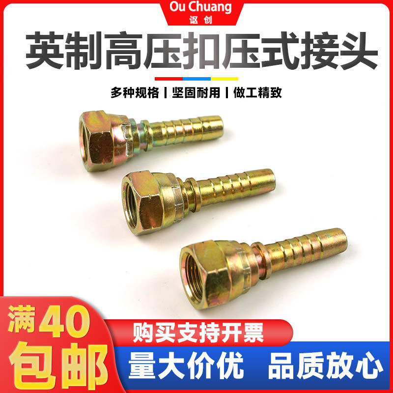 📚 英制液压扣压式高压油管接头直接头高压胶管接头钢丝碳钢扣押接头