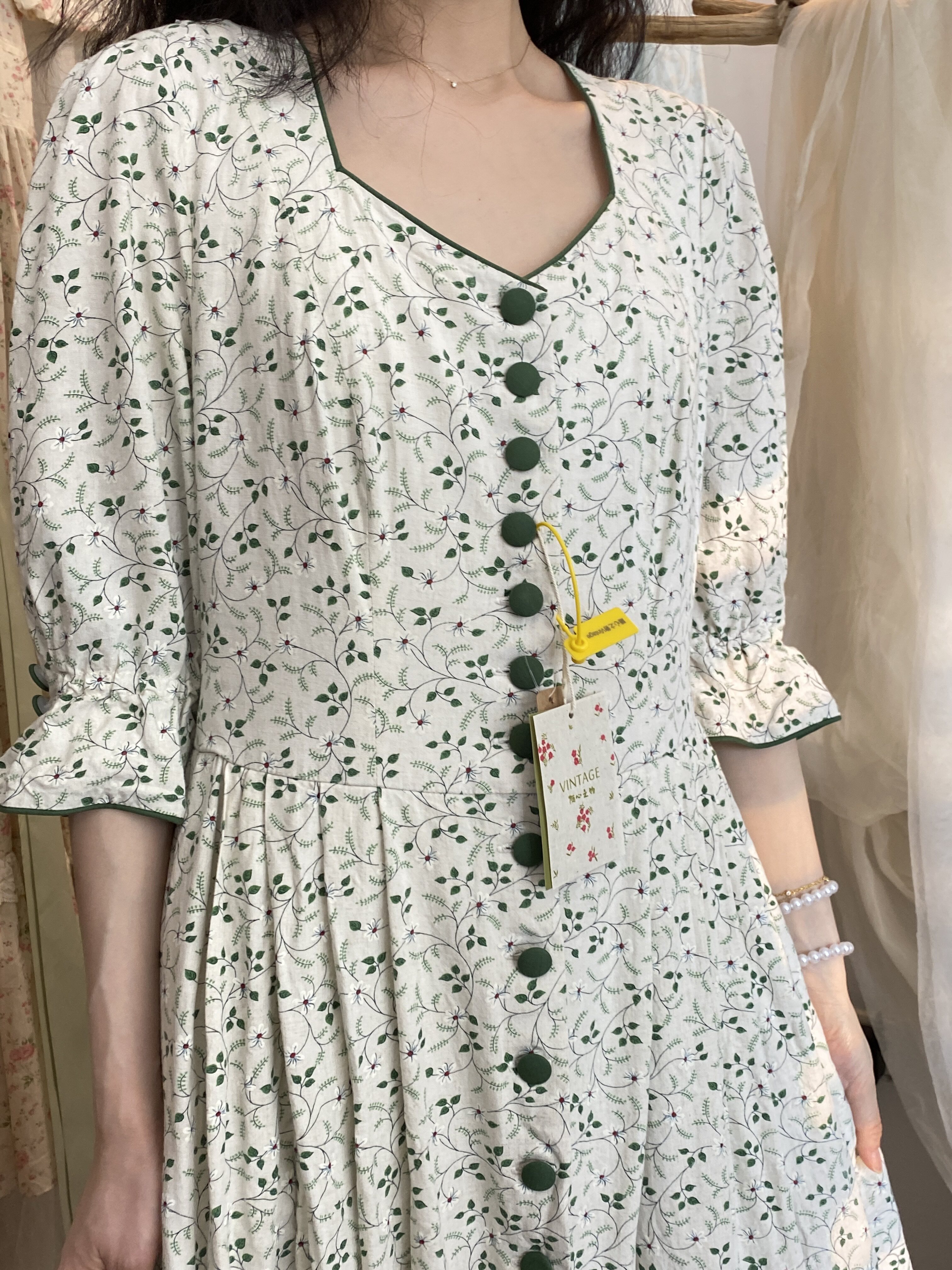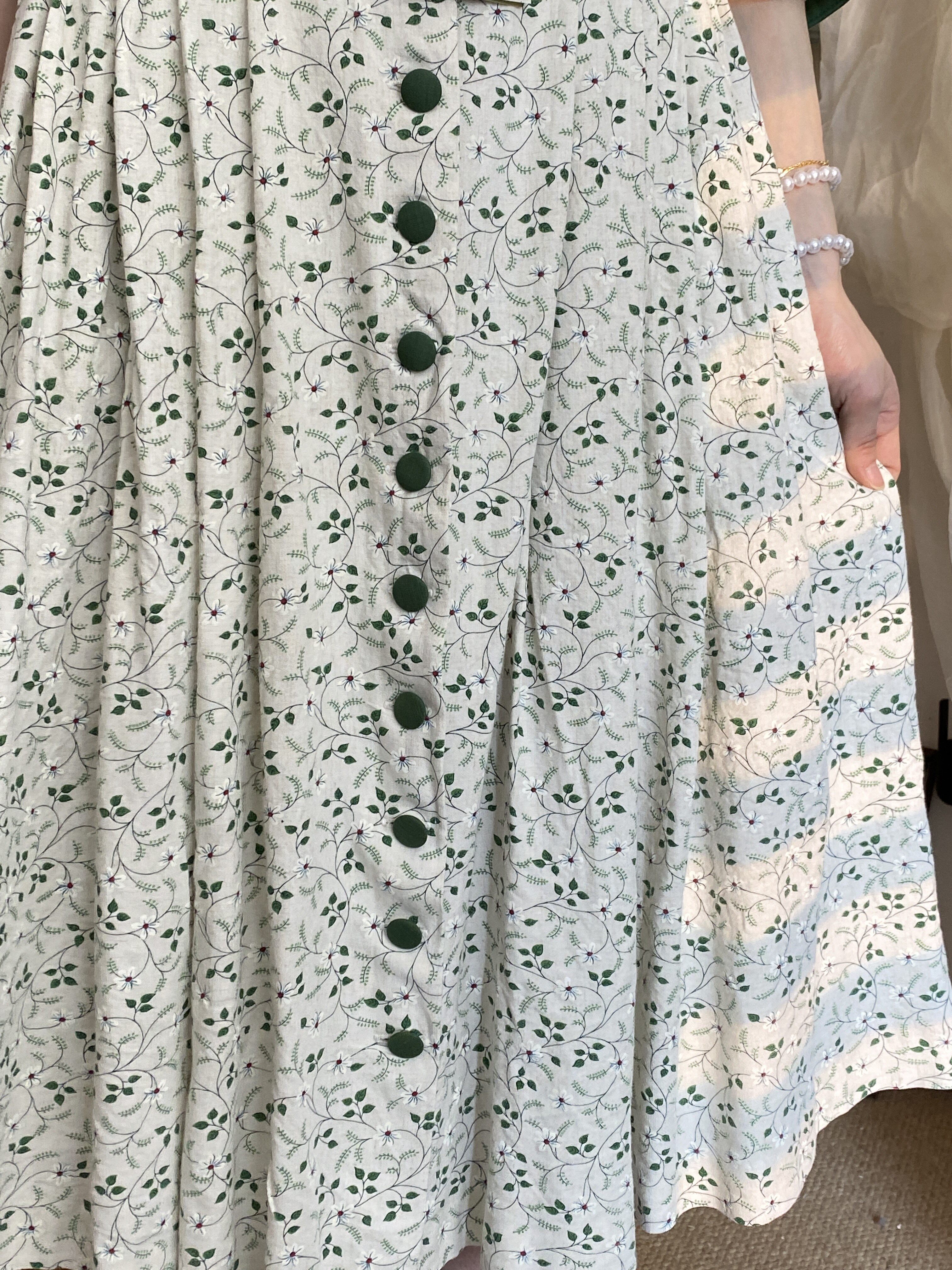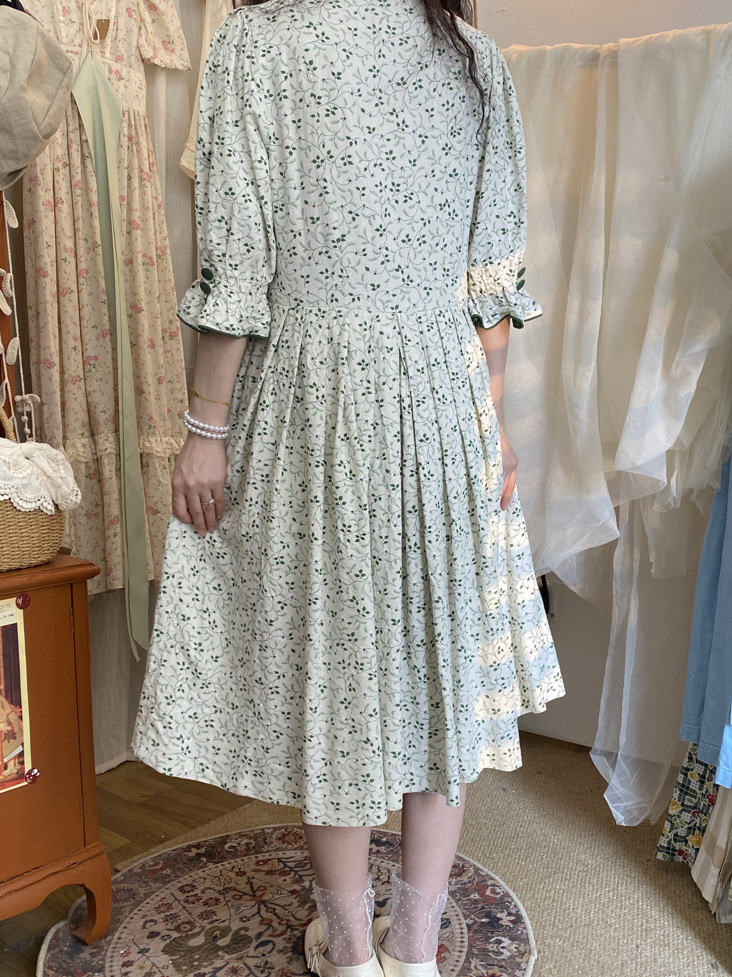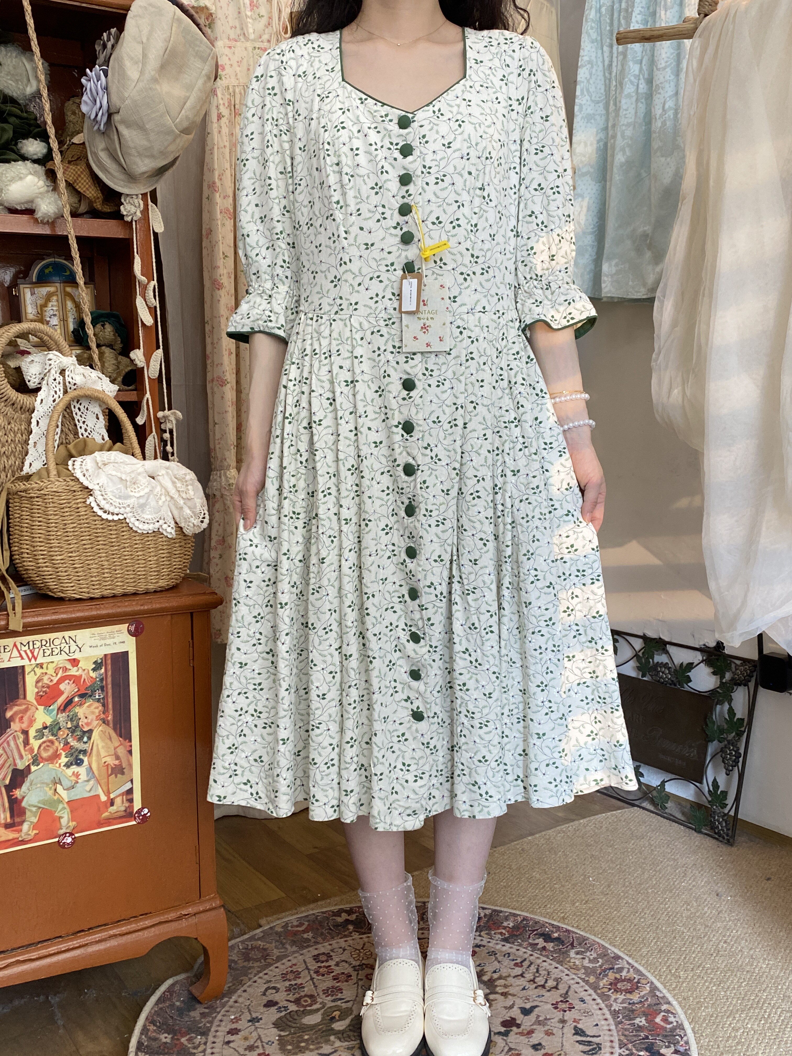 📚 欧洲复古vintage巴伐利亚清新田园风绿色植物系古着连衣裙