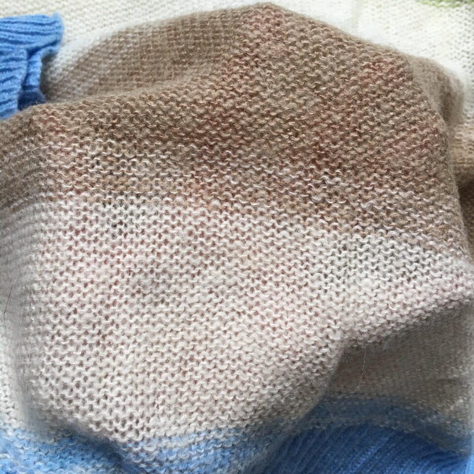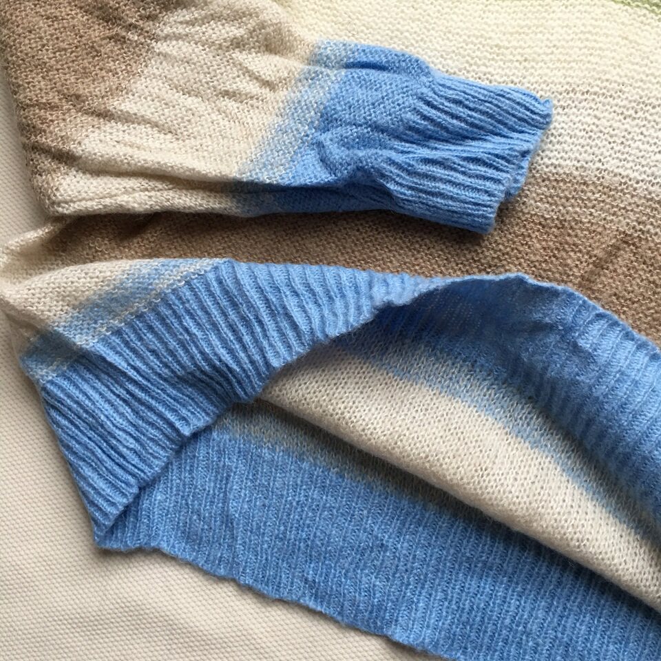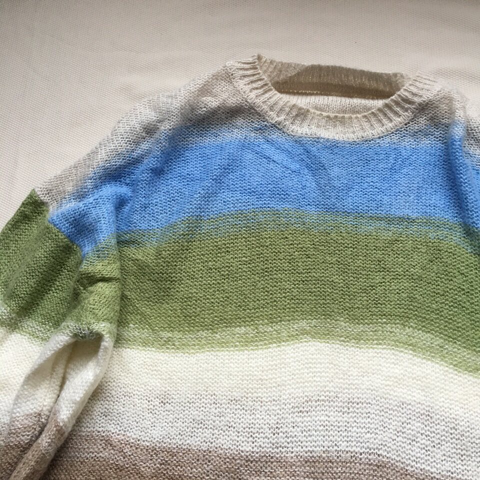 📚 28羊驼毛22马海毛混纺 彩色横条纹渐变薄款套头宽松休闲针织衫
