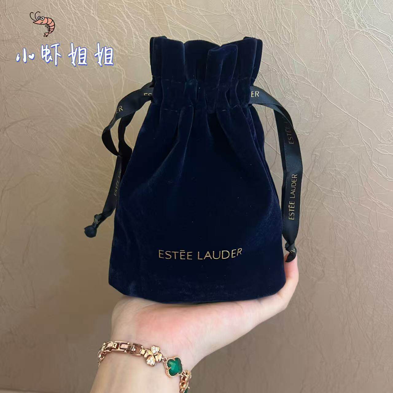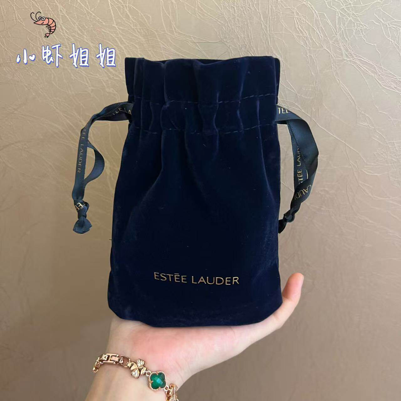 📚 雅诗兰黛专柜赠品绒面抽绳化妆包 深黑蓝色小号收纳袋束口袋