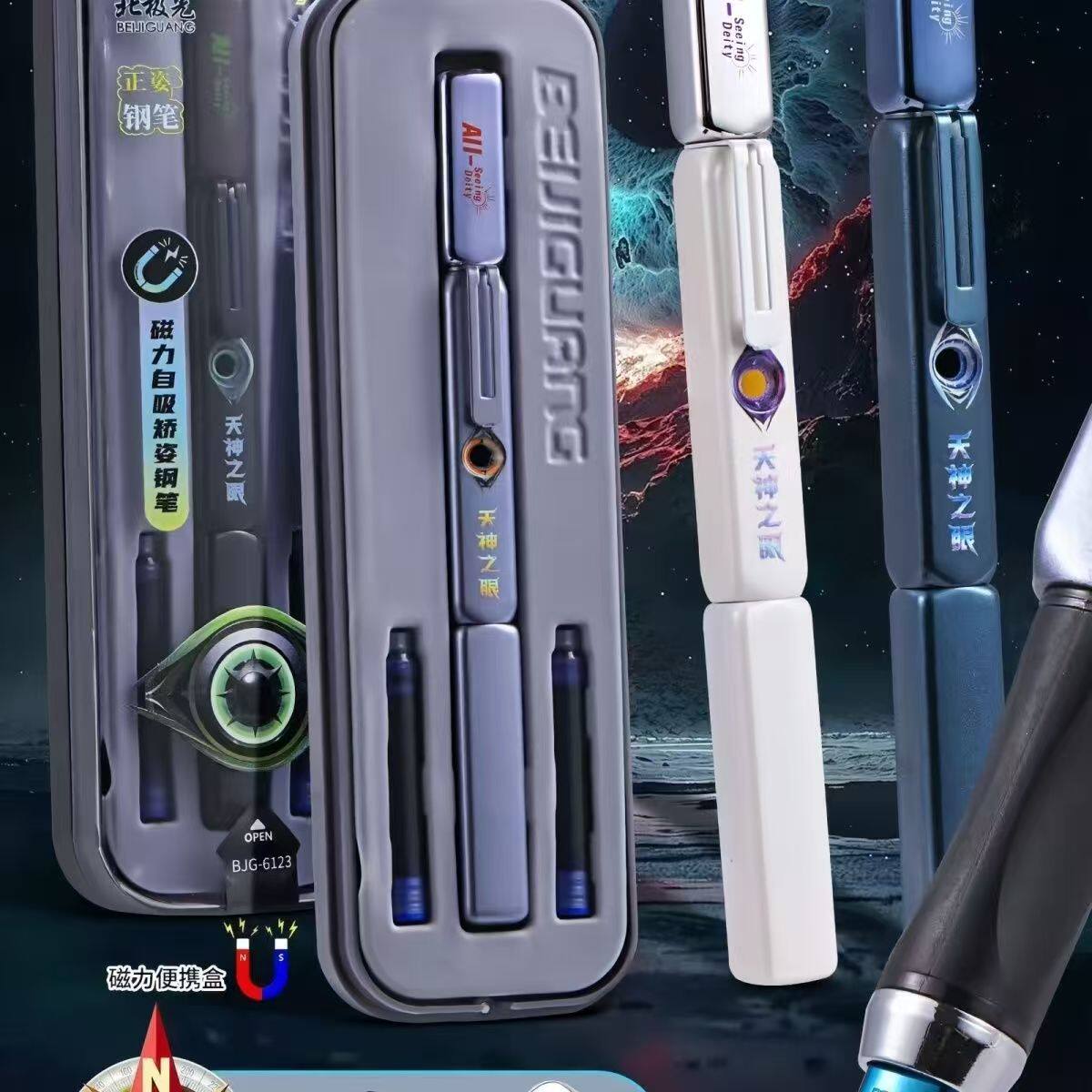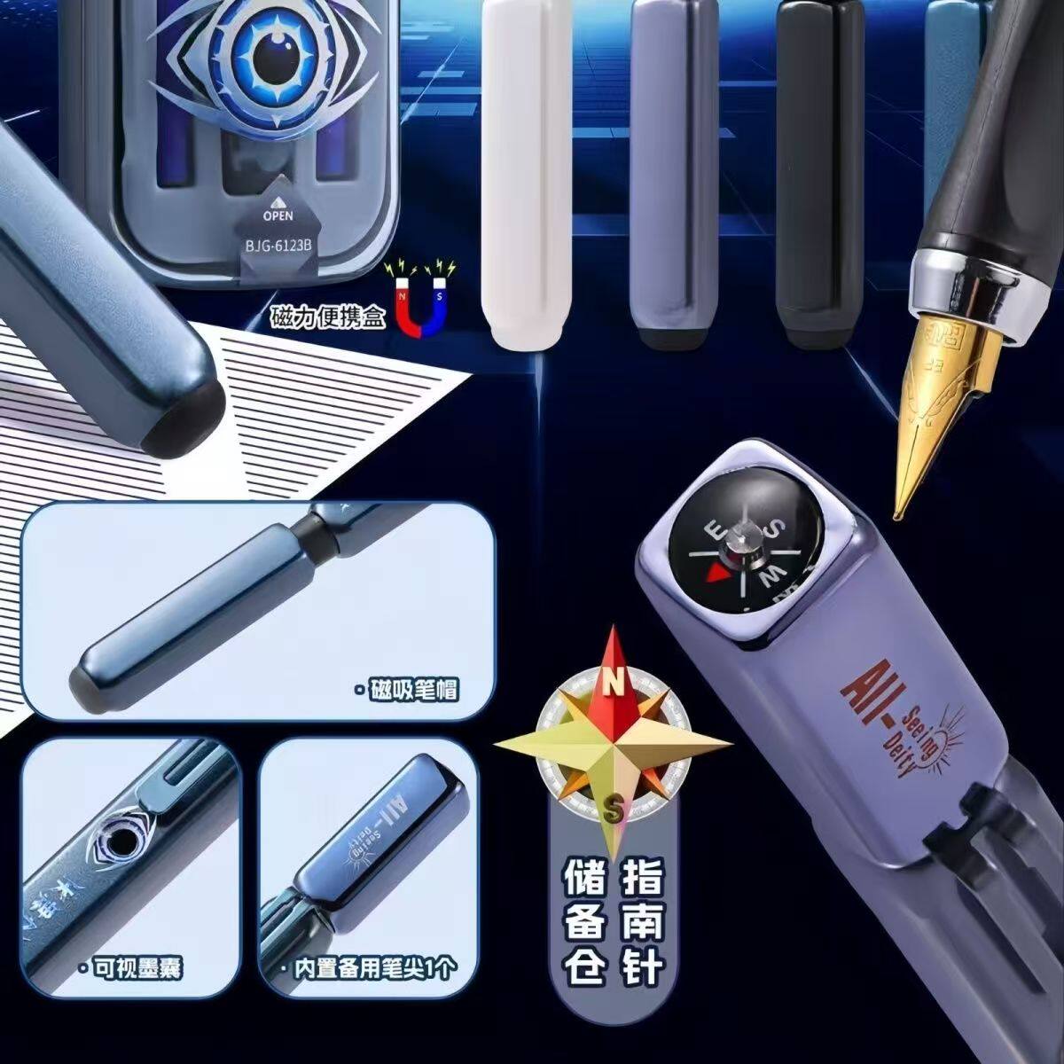 📚 北极光新款天神之眼磁力自吸导航钢笔指南针储备仓魔笔可擦钢笔