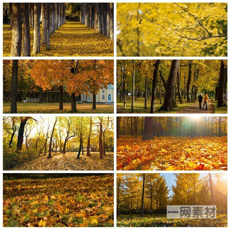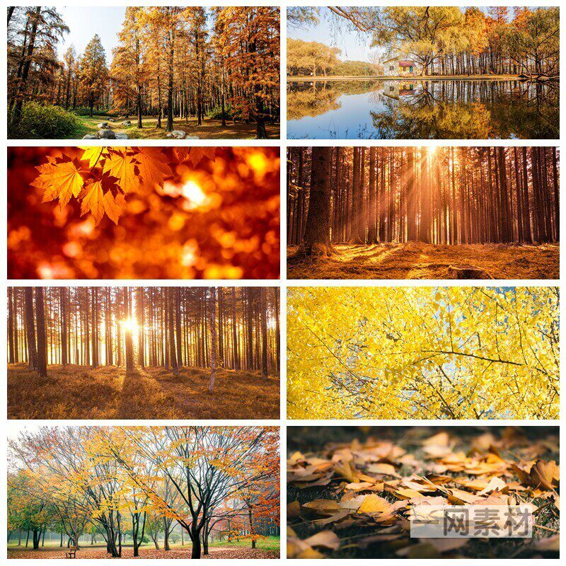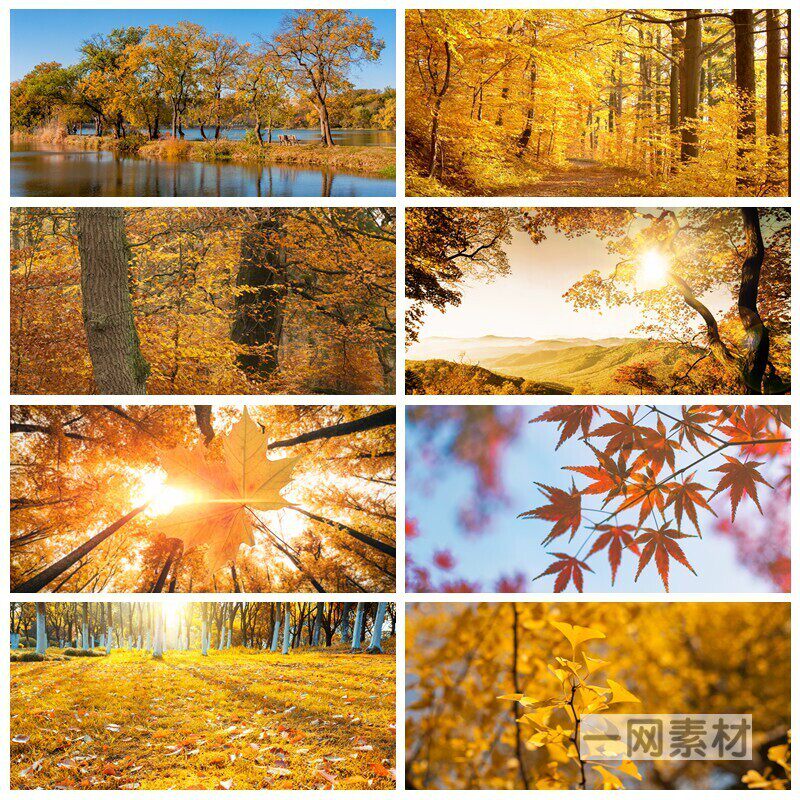 📚 秋天主题图片深秋季红叶银杏枫落叶山树林小道路平面后期设计素材