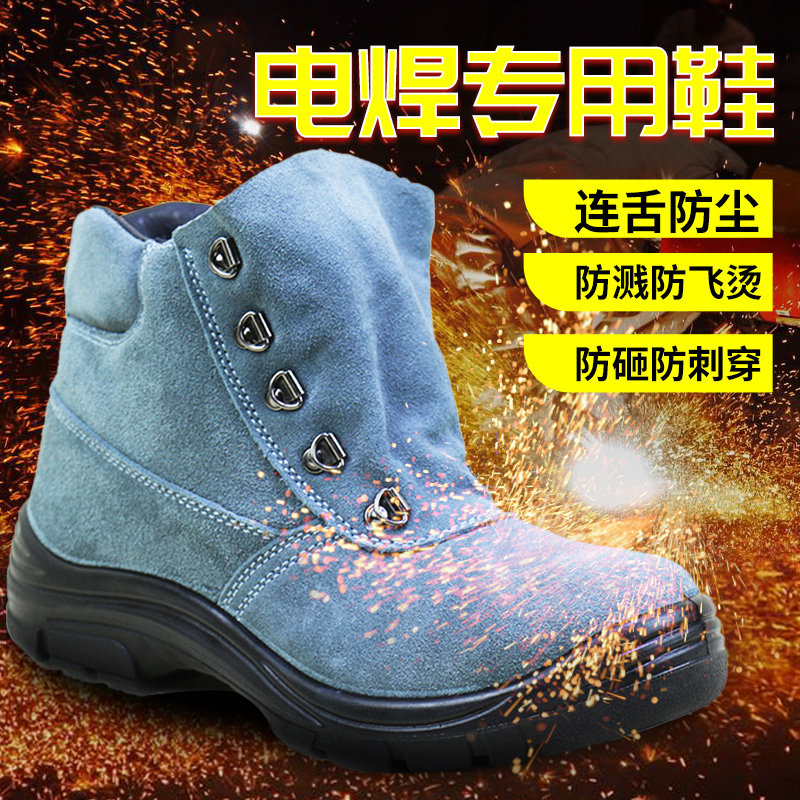 📚 电焊工专用劳保鞋翻毛牛皮连舌春秋高帮耐高温包钢头防砸烫工作鞋