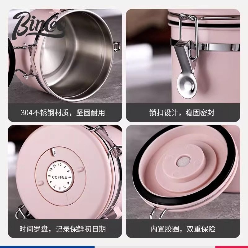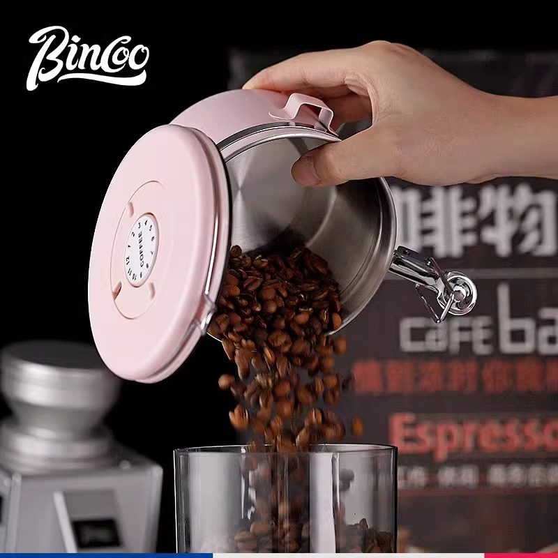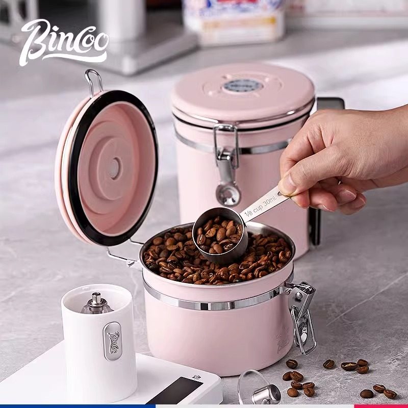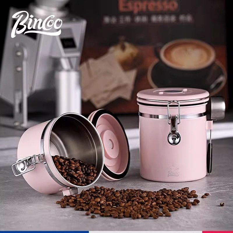 📚 Bincoo咖啡豆密封罐咖啡粉不锈钢储存罐单向排气阀茶叶坚果储存罐