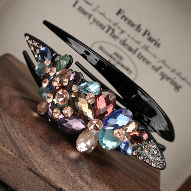 📚 夹子头饰发夹女水钻新后脑勺盘发大号头发抓夹发卡妈妈高端鸭嘴夹