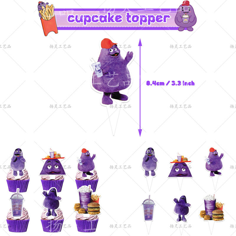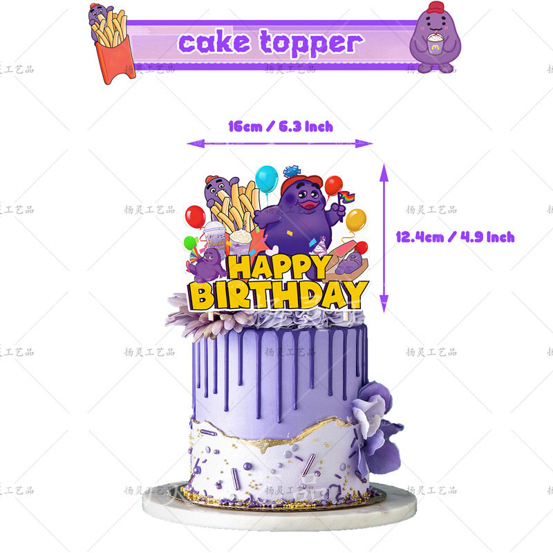 📚 Grimace主题生日派对装饰 奶昔大哥生日拉旗蛋糕插牌气球邀请卡