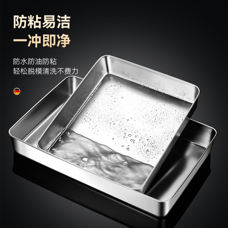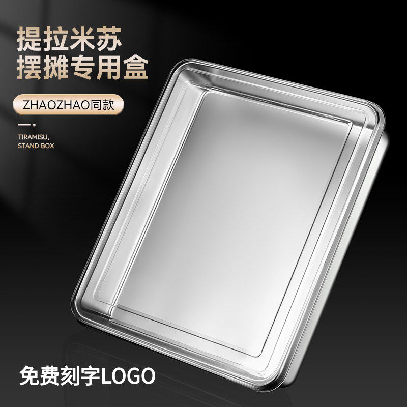 📚 网红提拉米苏模具不锈钢方盘摆摊专用长方形窄边展示托盘带透明盖
