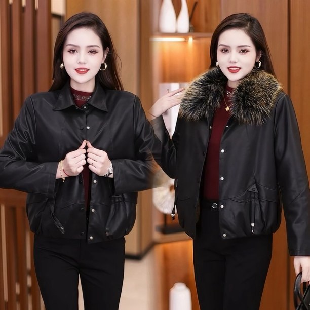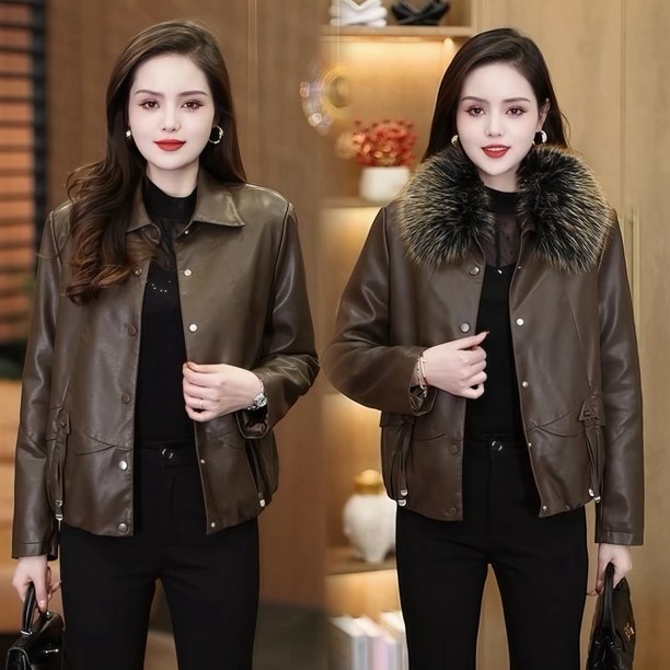 📚 [加绒带毛领款在这里拍]莫妮卡皮衣女加绒加厚夹克带毛领