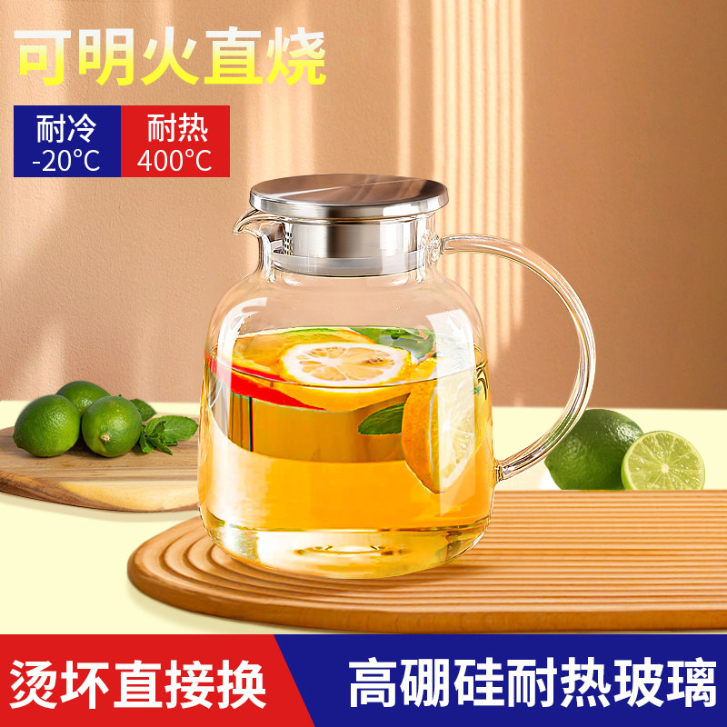 📚 冰箱冷水壶玻璃水壶耐高温凉水壶夏季家用大容量凉水杯套装防炸裂