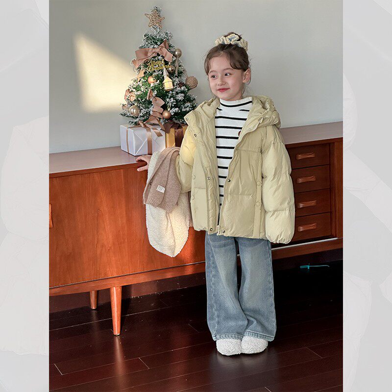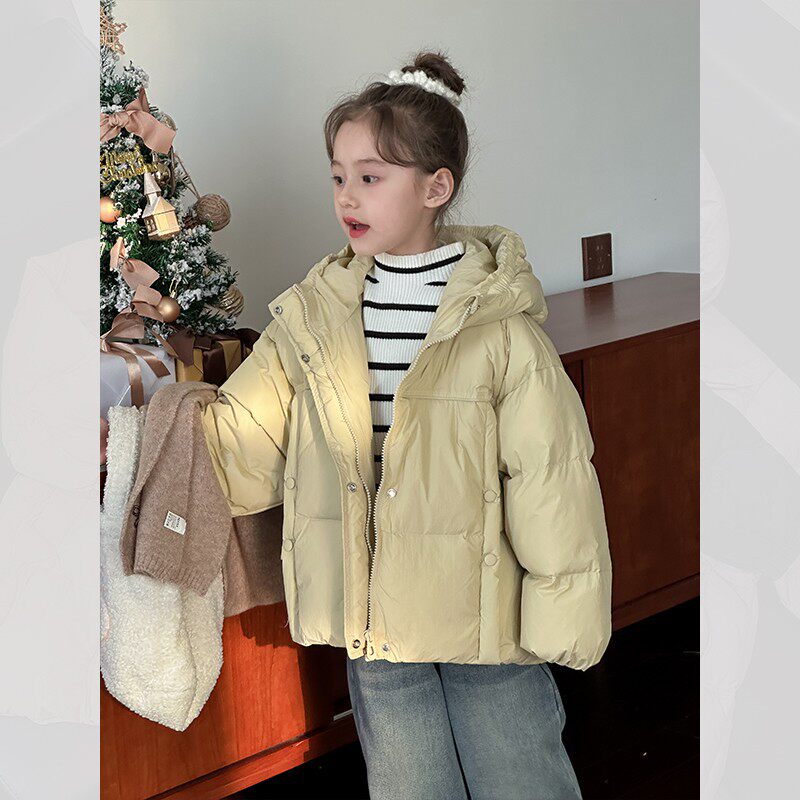 📚 女孩中大童90白鸭绒三防羽绒服韩系冬季新款男女童短款面包服外套