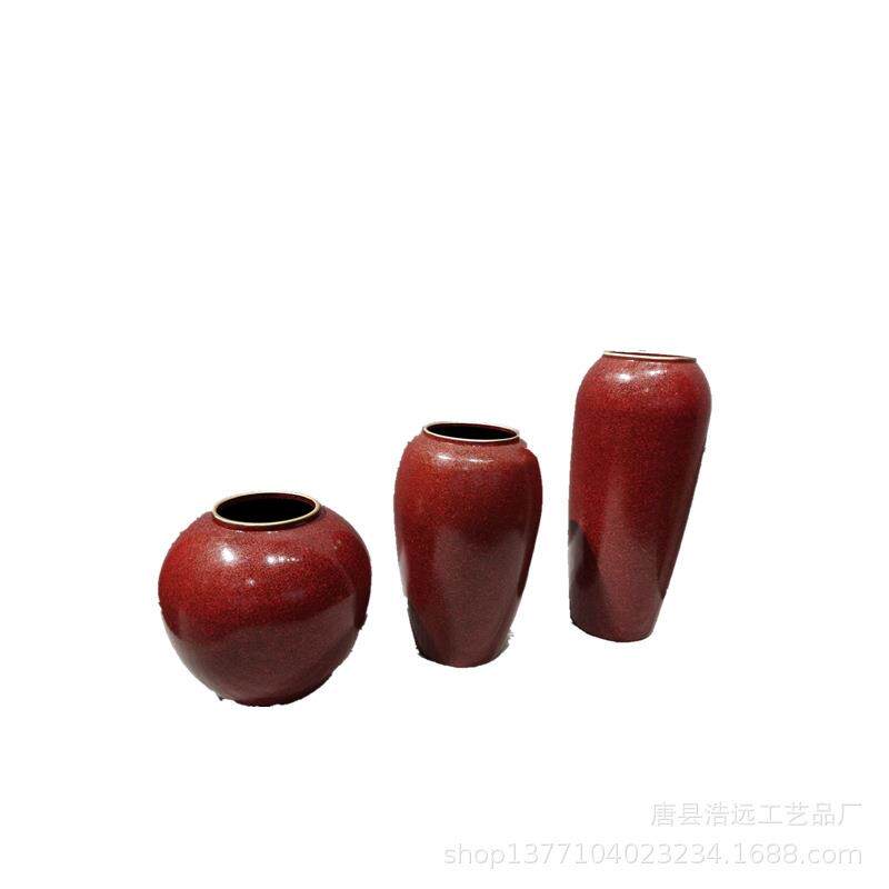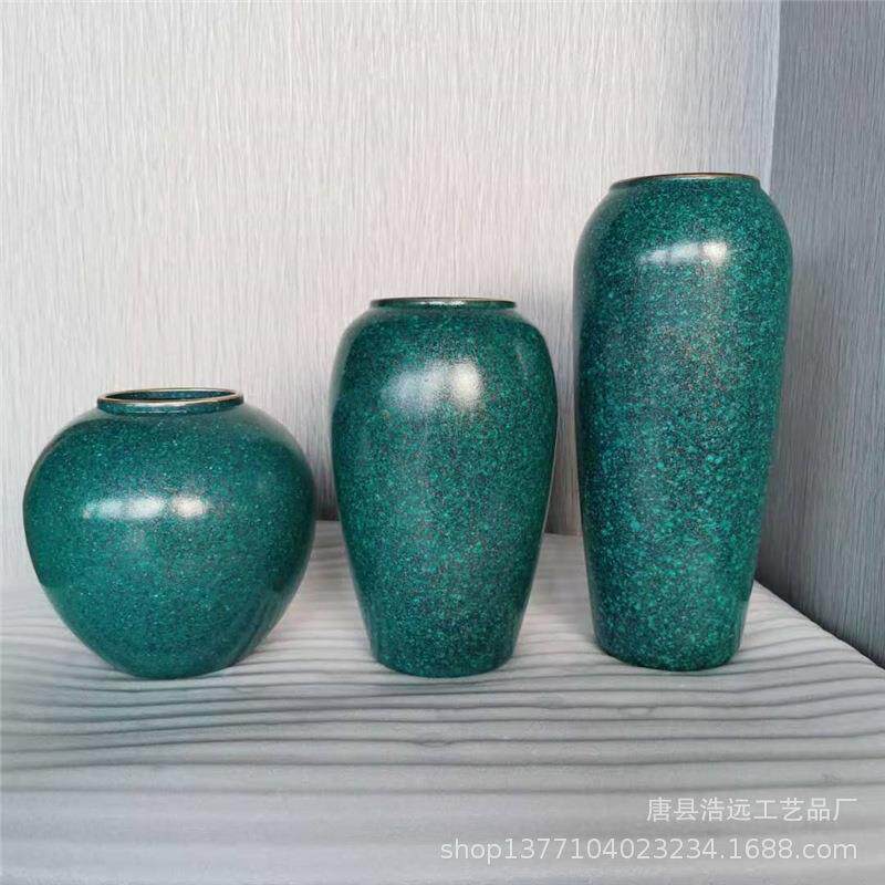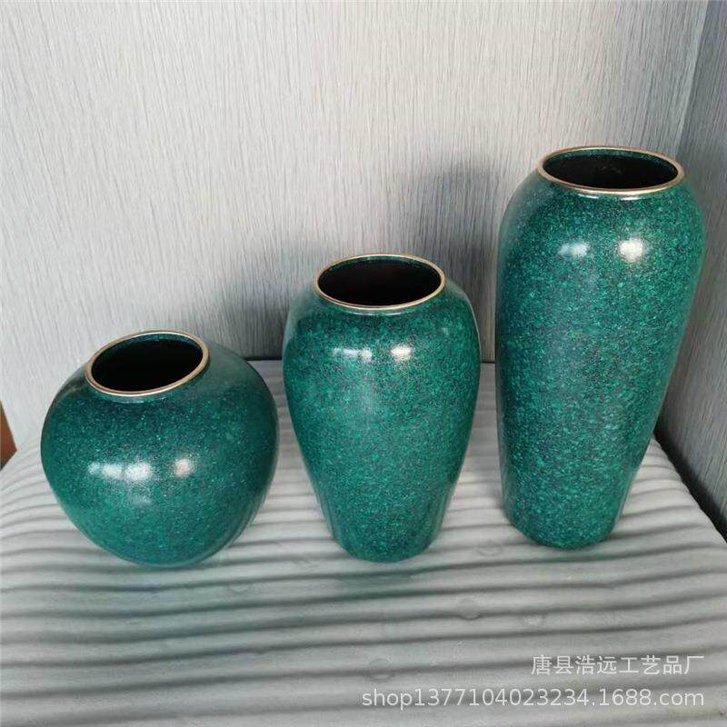 📚 中式蓝色铜彩釉花瓶三件套装家具客厅装饰品摆件新款铜花瓶