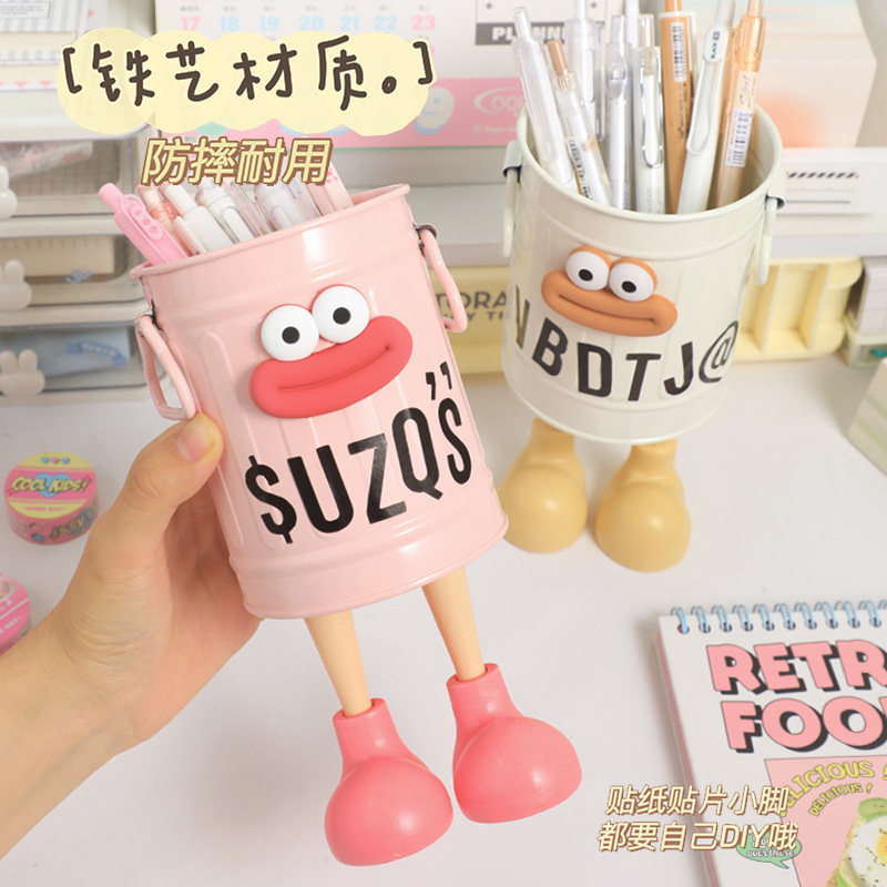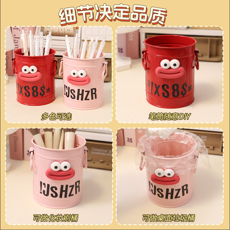 📚 可爱金属笔筒大容量学生桌面收纳盒女孩办公室儿童高级感创意摆件