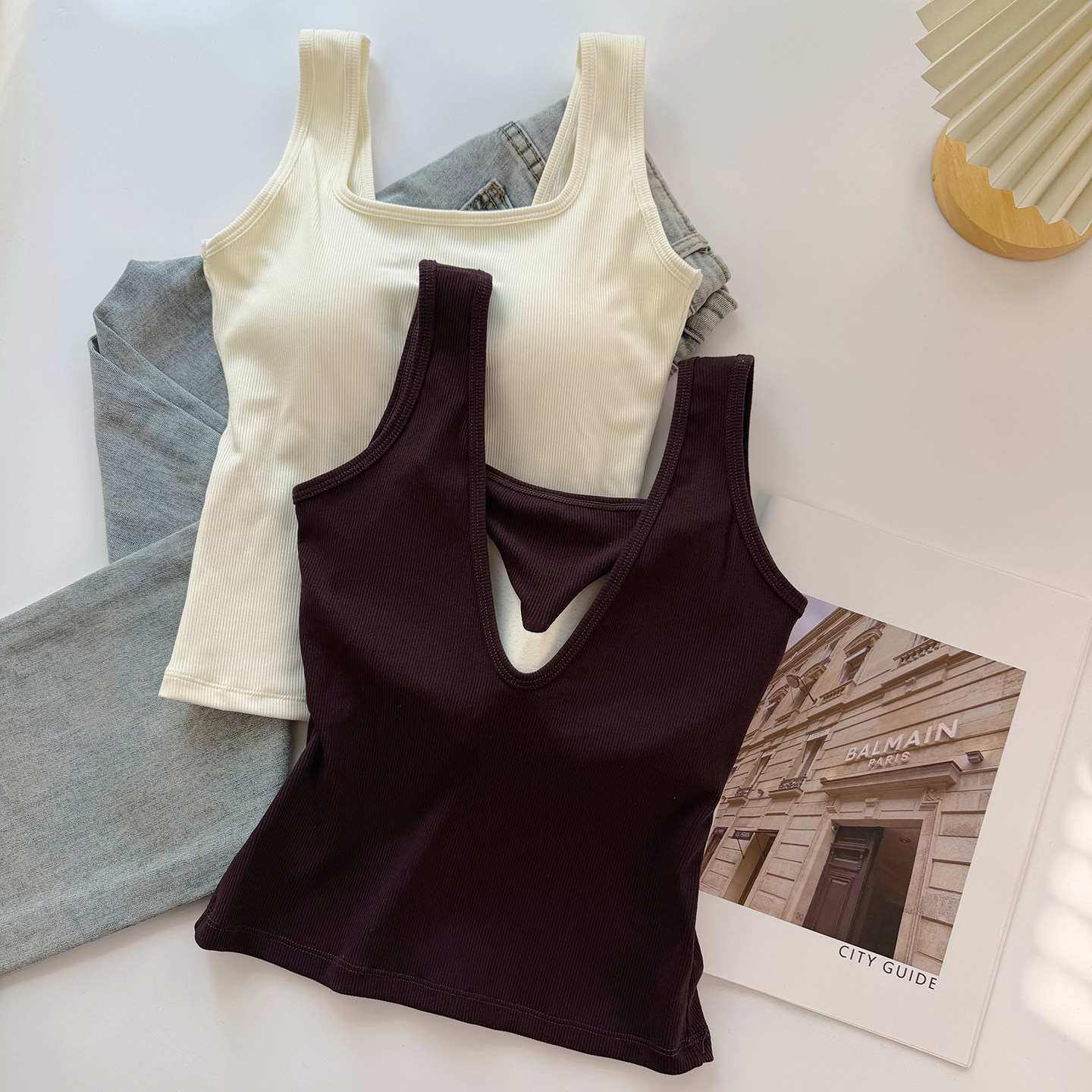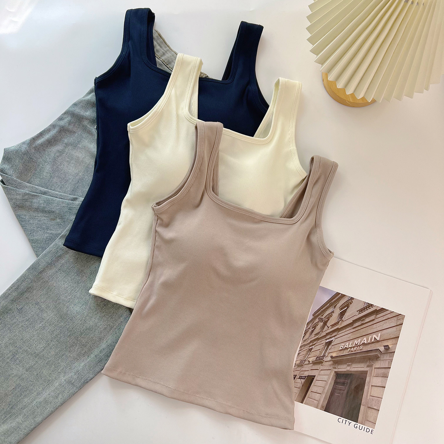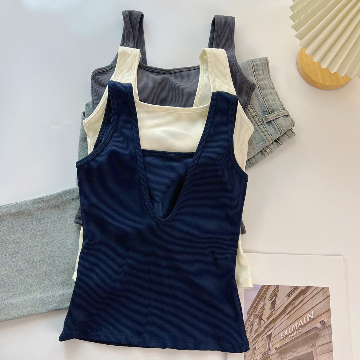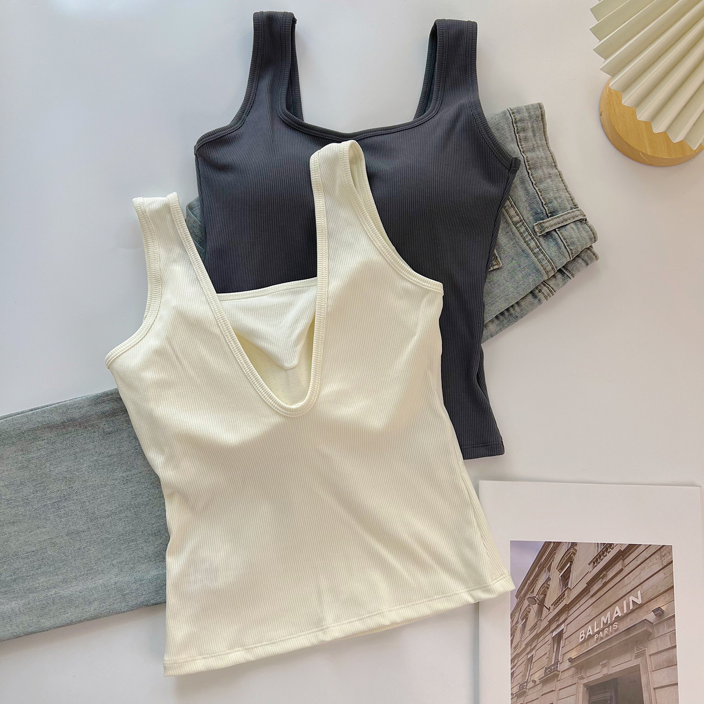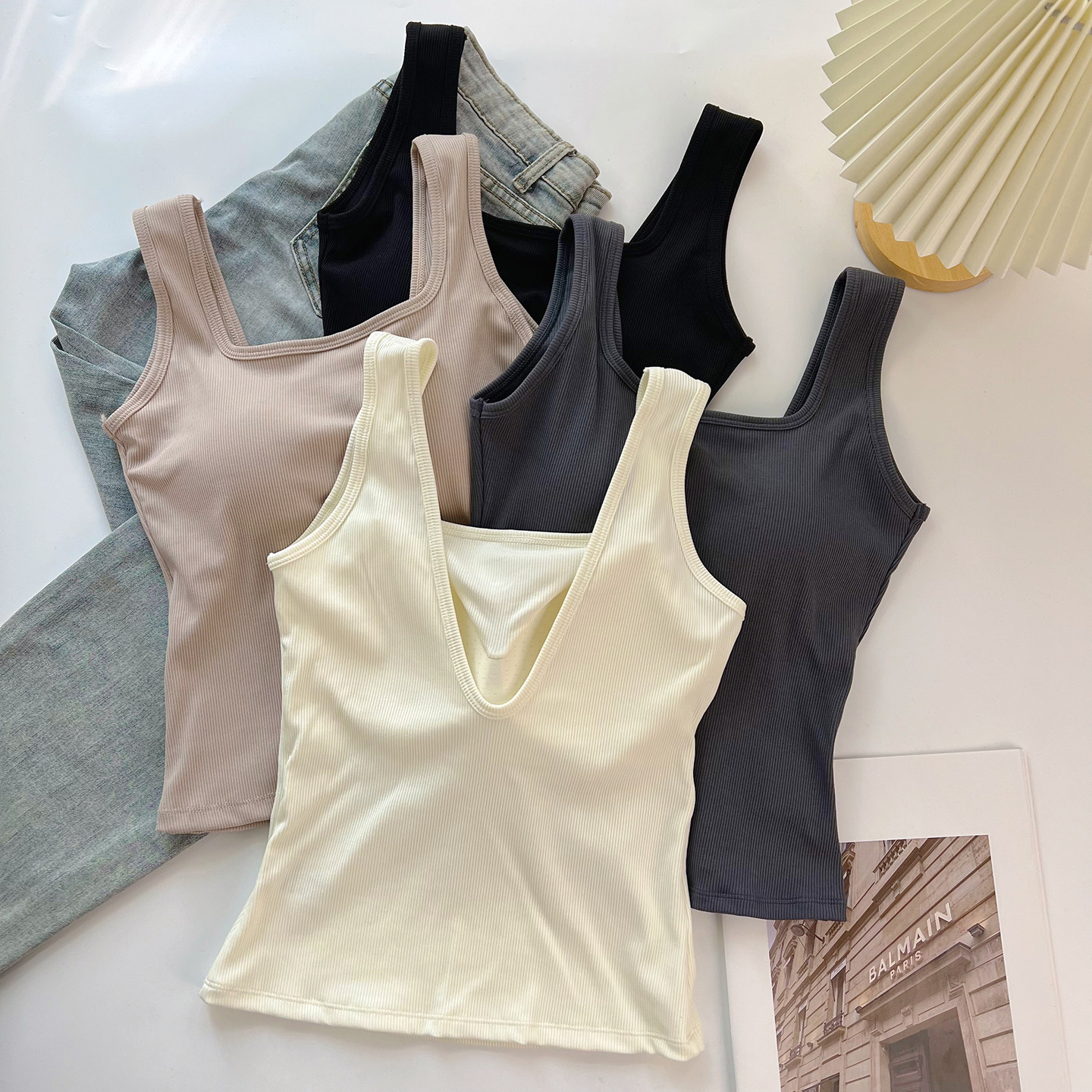 📚 美式露背吊带小背心女夏外穿u型美背文胸一体内搭学生带胸垫上衣