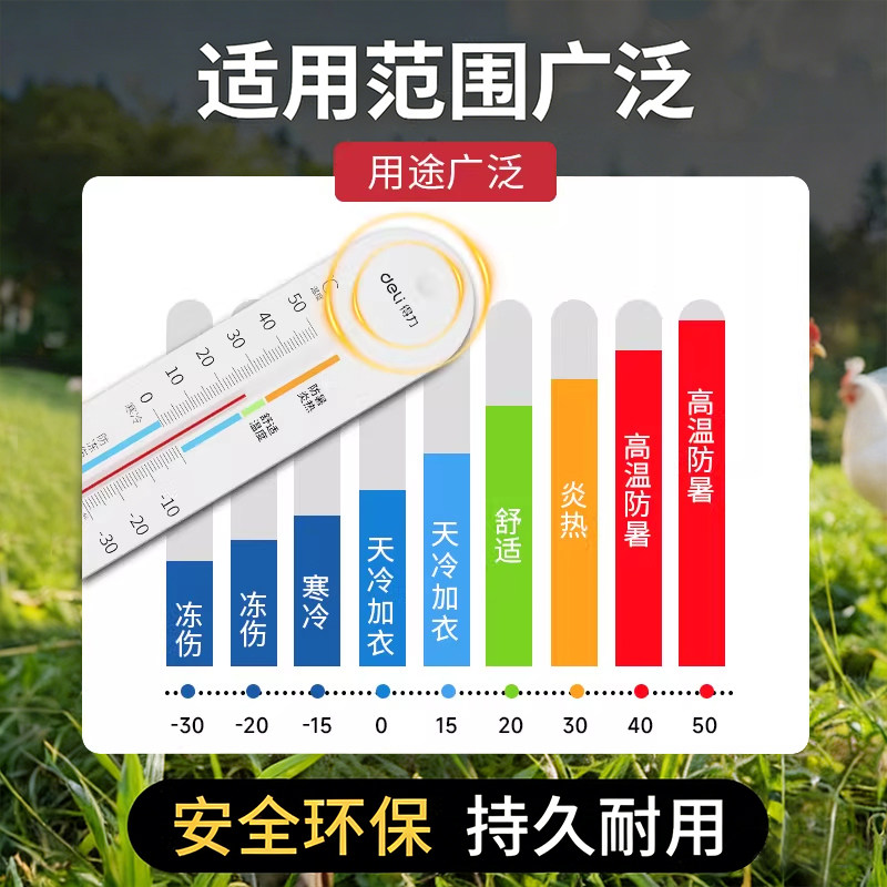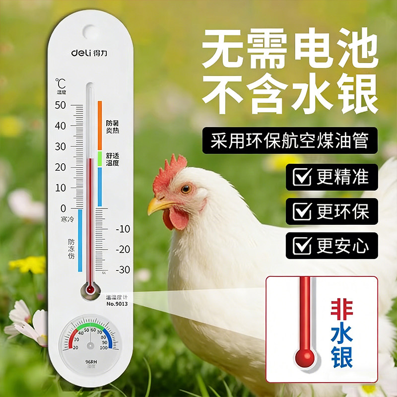 📚 得力养殖专用温度计鸡场养猪场大棚壁挂式家用室内高精度温湿度计