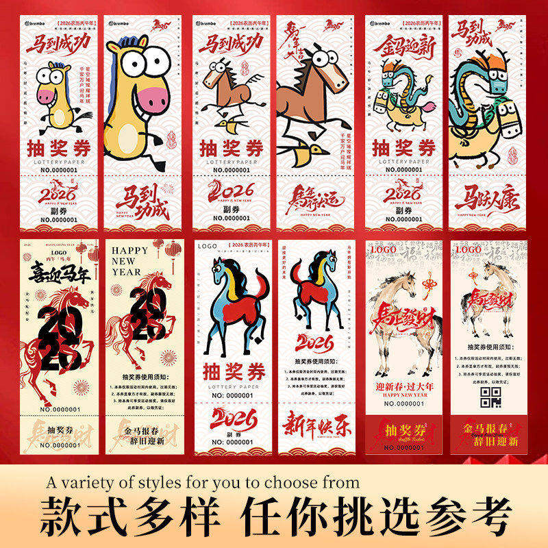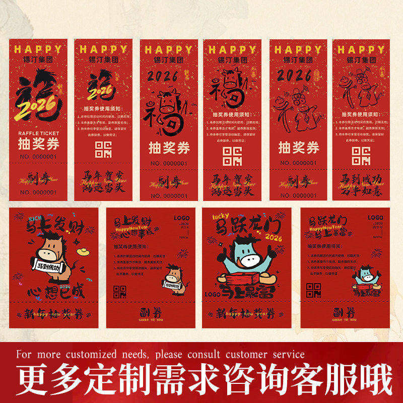 📚 新年哭哭马抽奖券定制马年创意抽签中奖卡片设计活动入场券门票根