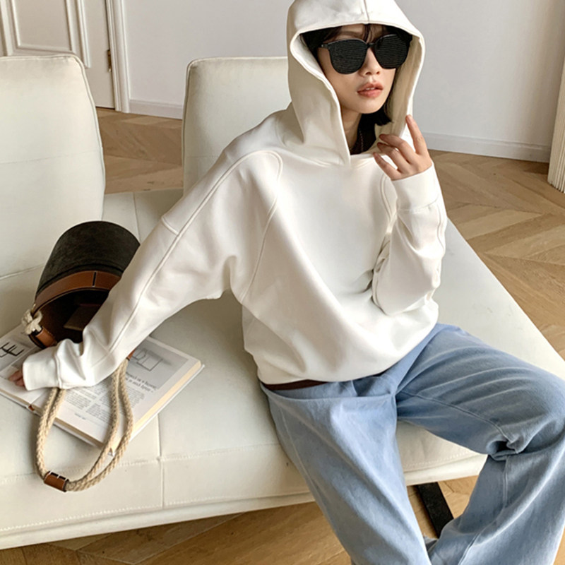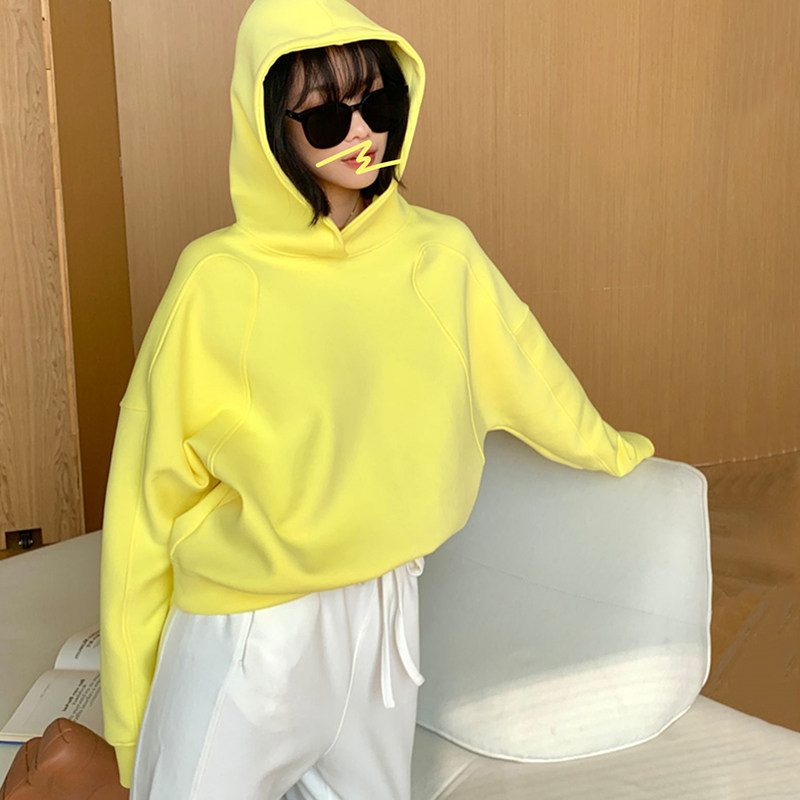 📚 韩系慵懒松弛感短款连帽黄色卫衣女款秋冬新款加绒套头小个子上衣