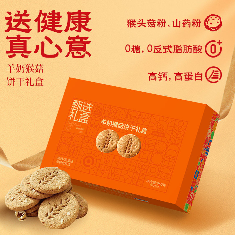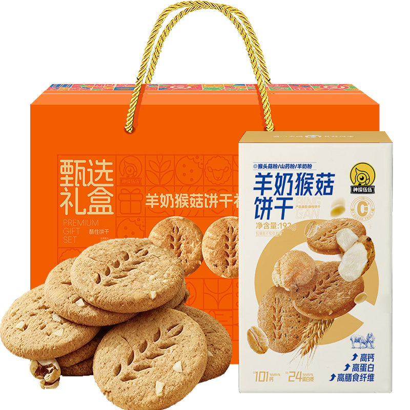 📚 神探伍伍羊奶猴菇饼干礼盒高蛋白高钙高膳食纤维无糖代餐饱腹零食