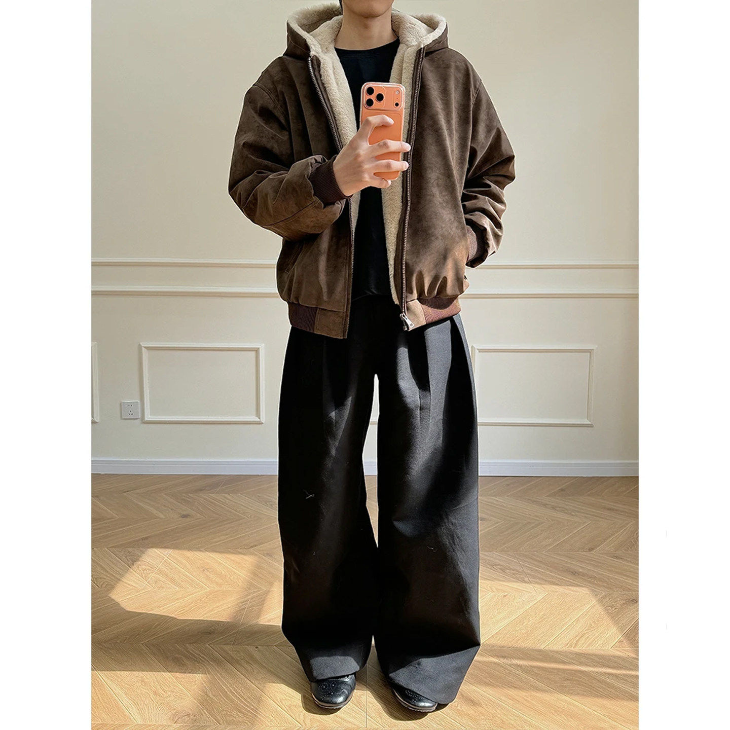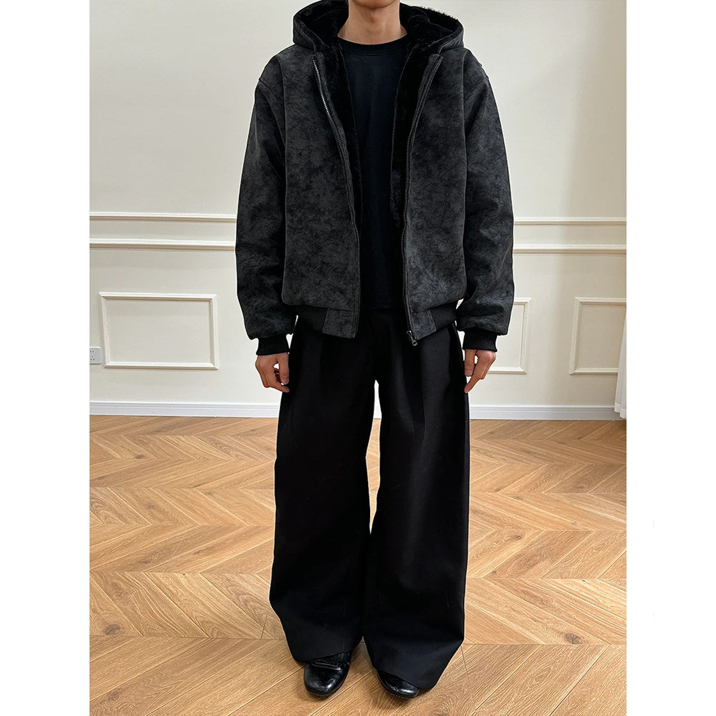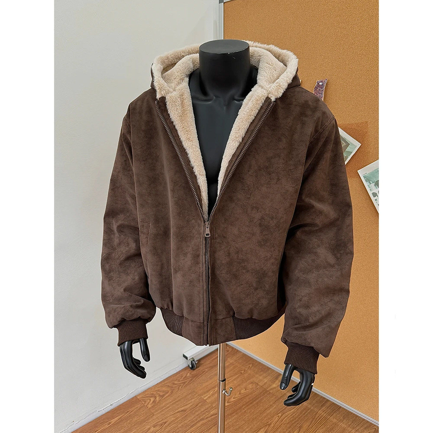 📚 FOG EMMA座山雕PU皮棉服男女冬季复古加绒保暖仿兔毛连帽棉衣外套
