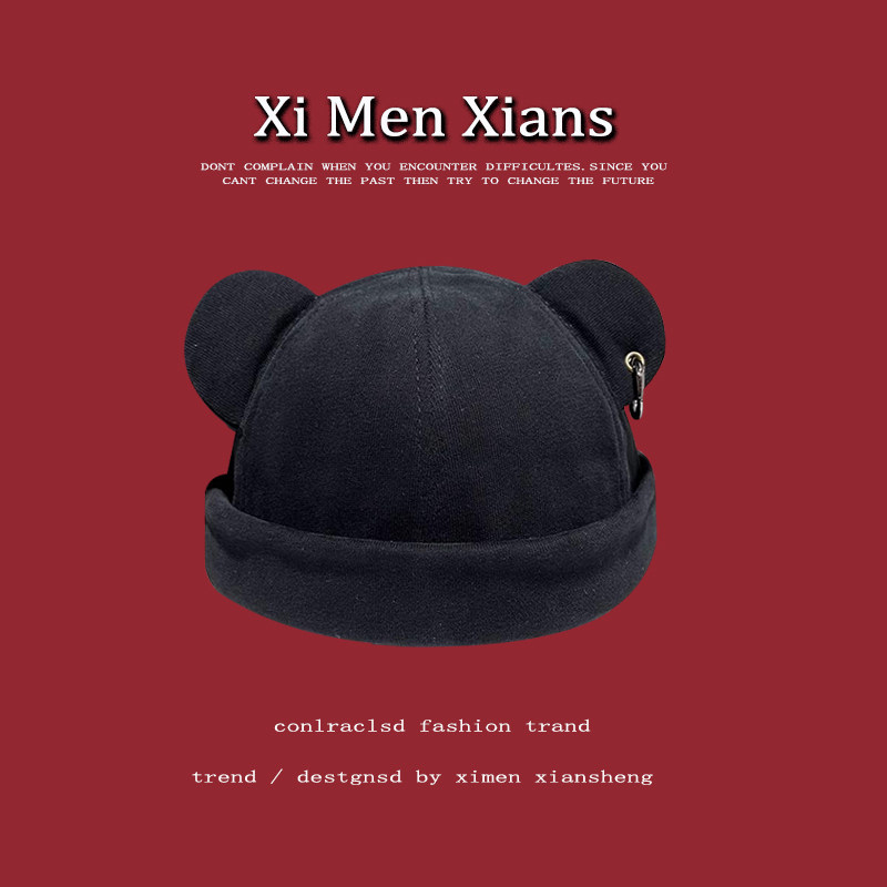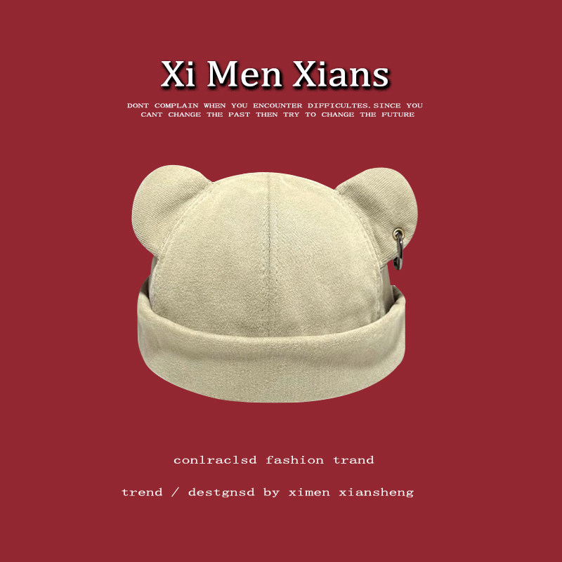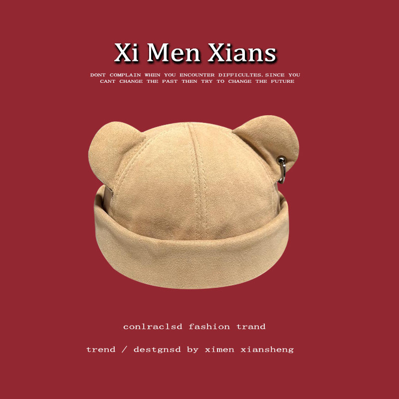 📚 韩版可爱熊耳朵瓜皮帽子男女潮无檐流氓地痞帽哈大头围雅痞地主帽