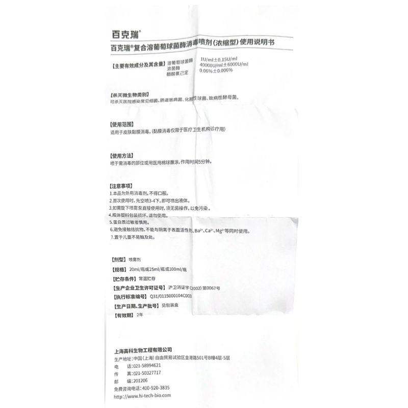 📚 百克瑞复合溶葡萄球菌酶消毒喷剂浓缩型25ml佰科瑞皮肤喷剂液正品