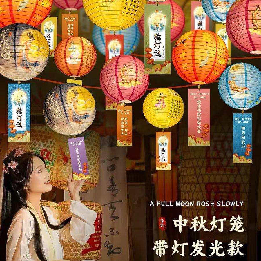 📚 新年元宵节中秋节赏花灯猜灯谜灯笼手提发光八月十五灯笼灯谜布置