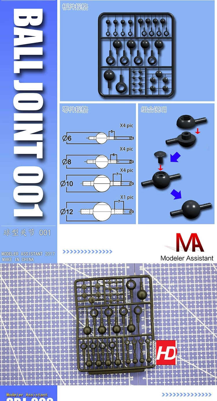 📚 MA高达模型补件零件配件山口式关节枝人形改造球型活动关节球