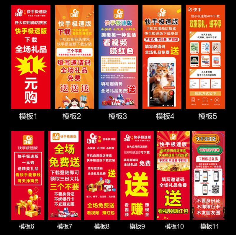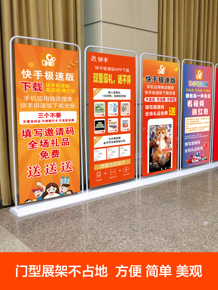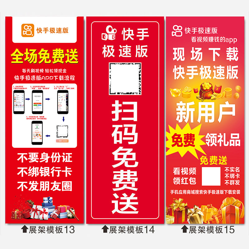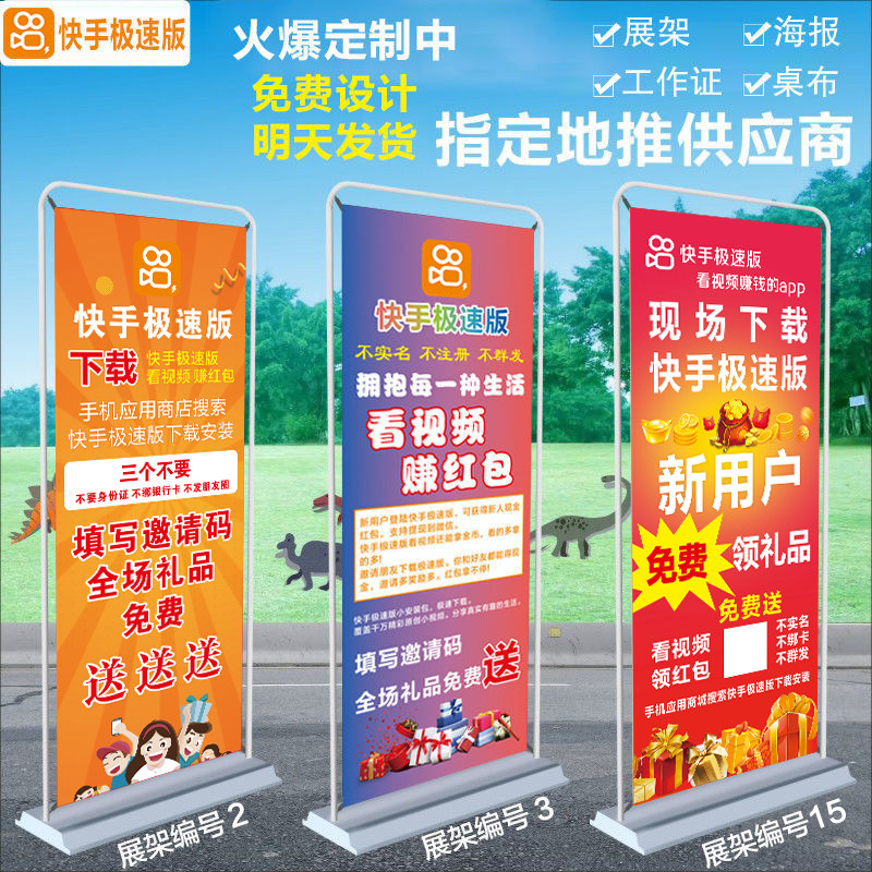 📚 快手极速版地推易拉宝海报抖音广告牌展架拉新线下广告工作证桌布