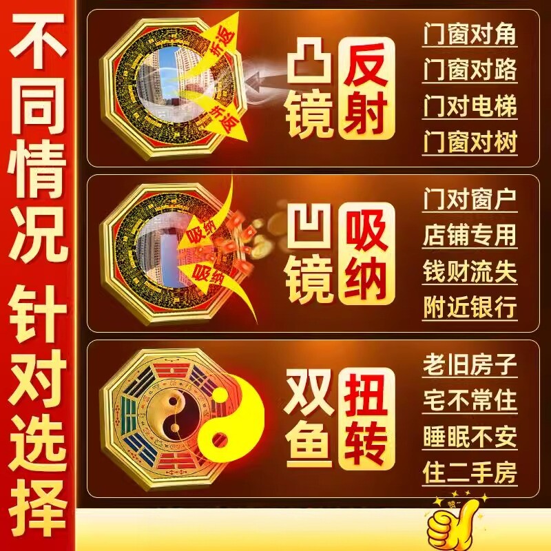 📚 八卦镜凸镜大门口窗户家用太极凹镜阳台平面九宫纯铜家居装饰摆件