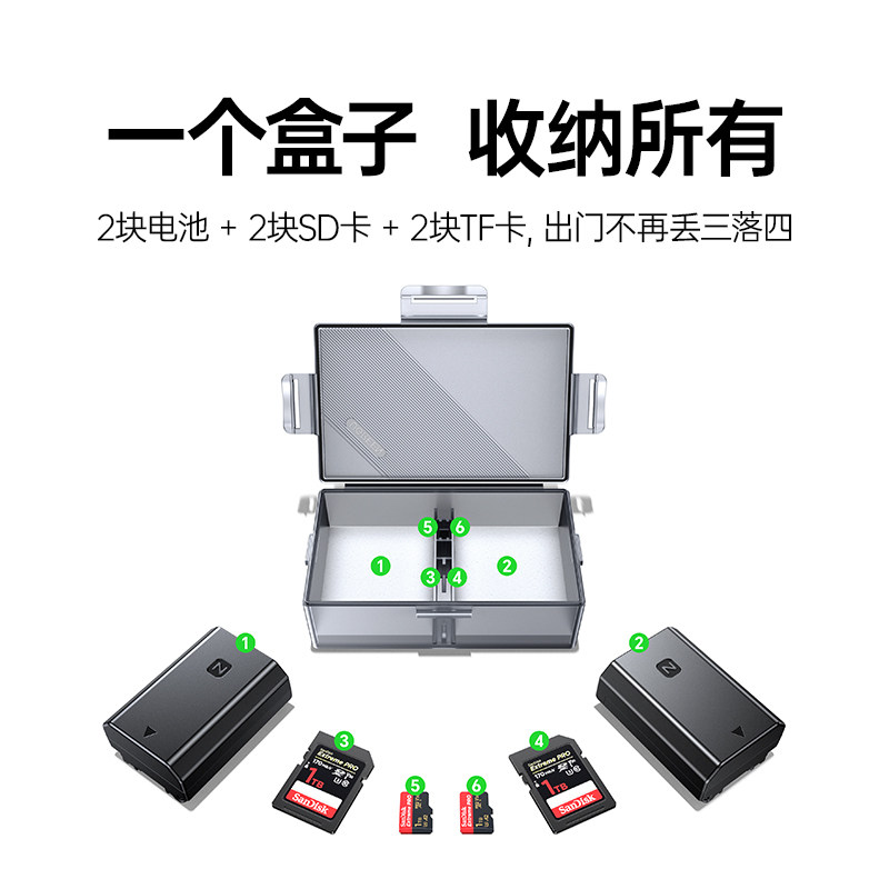 📚 绿联相机电池收纳盒适用索尼fz100/ fw50佳能e17/e6nh 尼康enel25/enel15c富士w126s/w235微单TF/SD内存卡盒