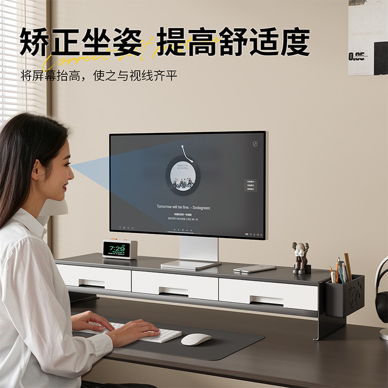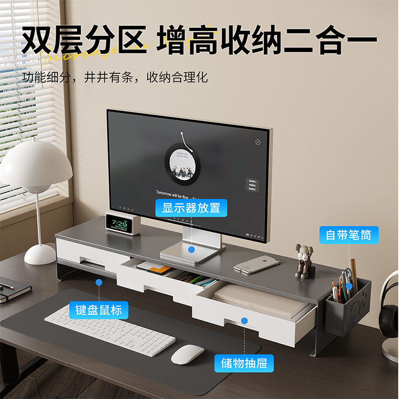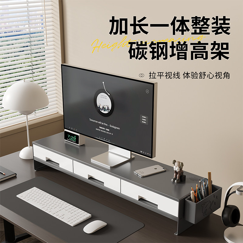 📚 加长台式电脑增高架显示器托架碳钢桌面收纳架免安装护颈办公神器