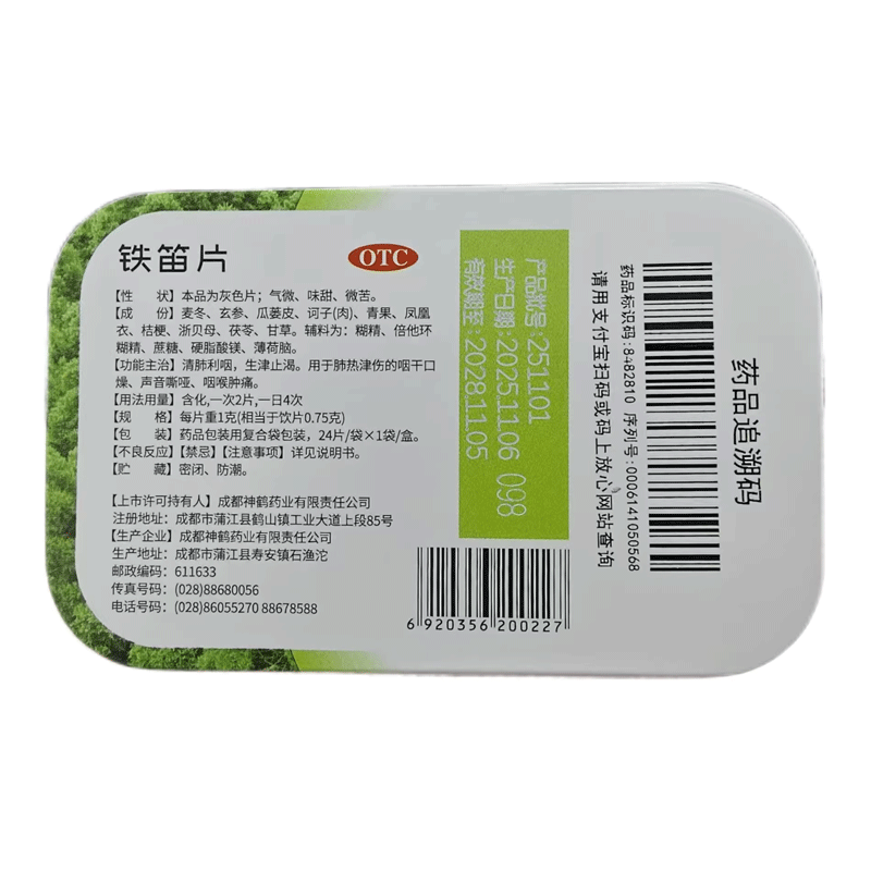 📚 希臣 铁笛片 1g*24片/盒 清肺利咽生津止渴咽干口燥咽喉肿痛