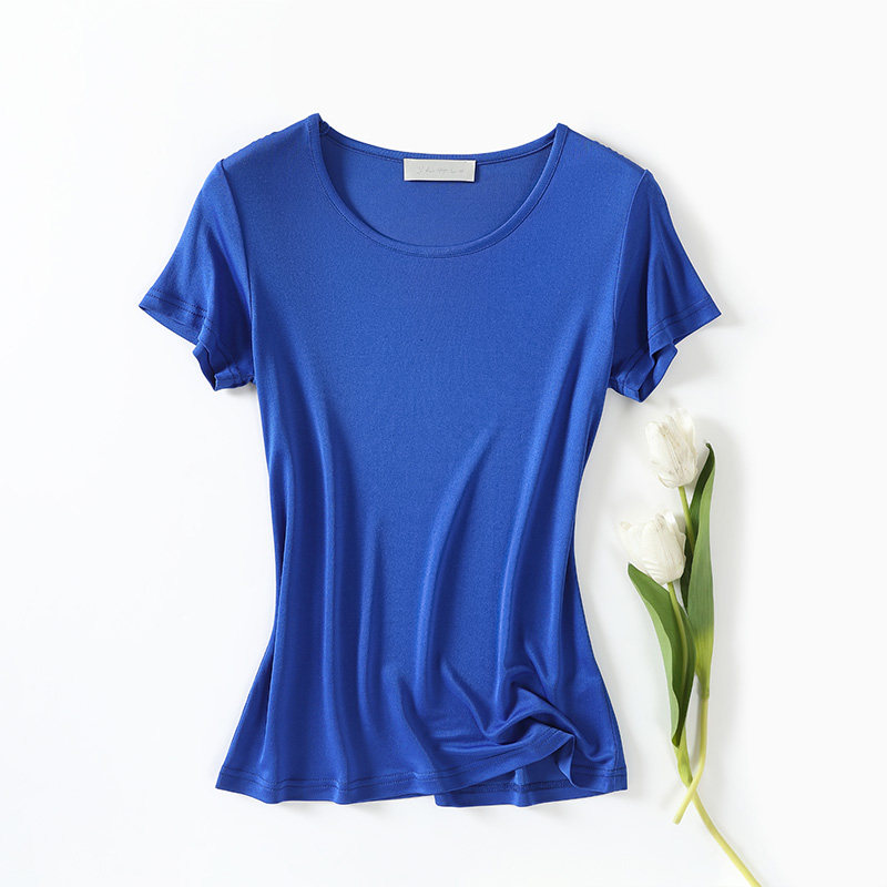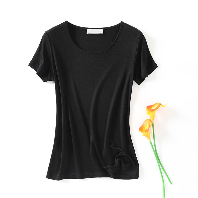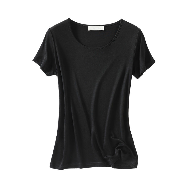 📚 新款高档桑蚕丝纯色圆领真丝基础百搭短袖T恤修身上衣打底衫夏季