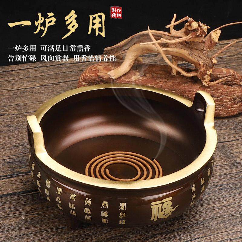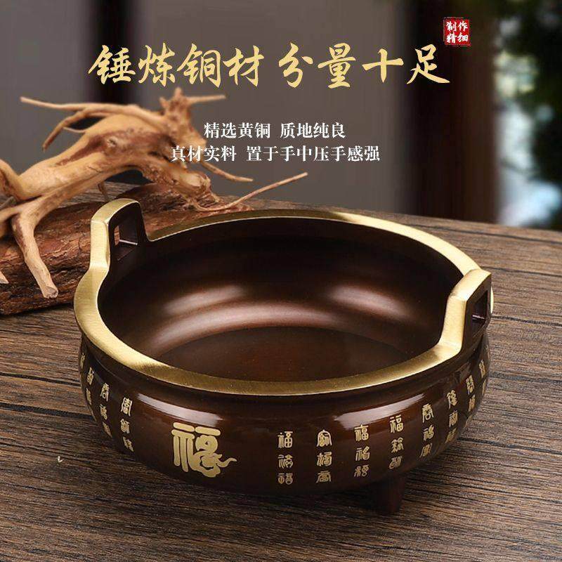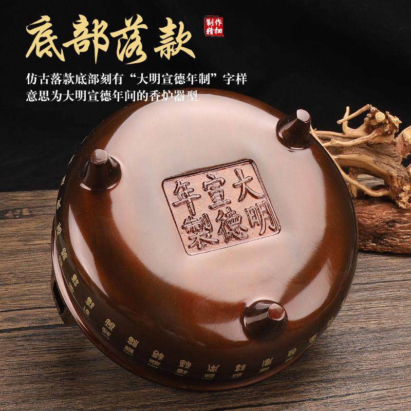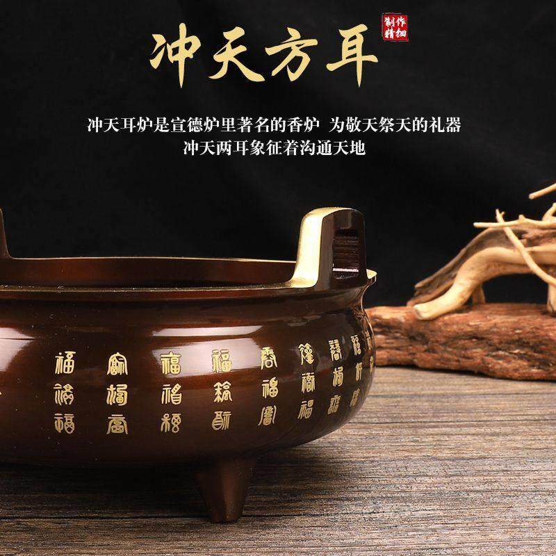 📚 百福纯铜香炉家用室内上香供佛供奉插香鼎炉紫铜色大号三足香火炉
