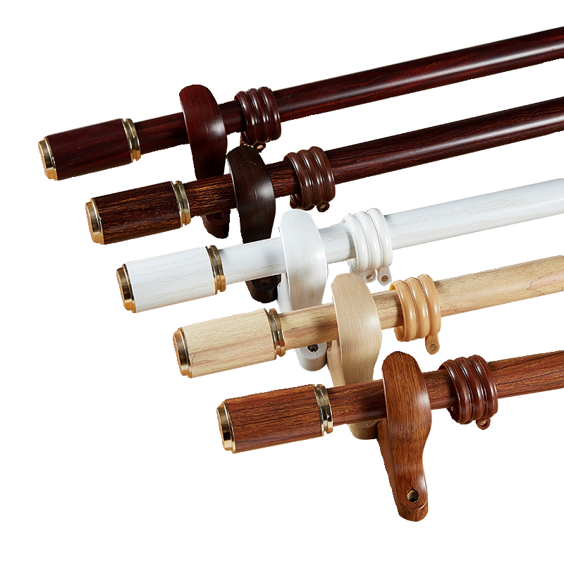 📚 加厚仿木纹罗马杆窗帘杆静音中式铝合金一整套全套轨道单杆双杆子