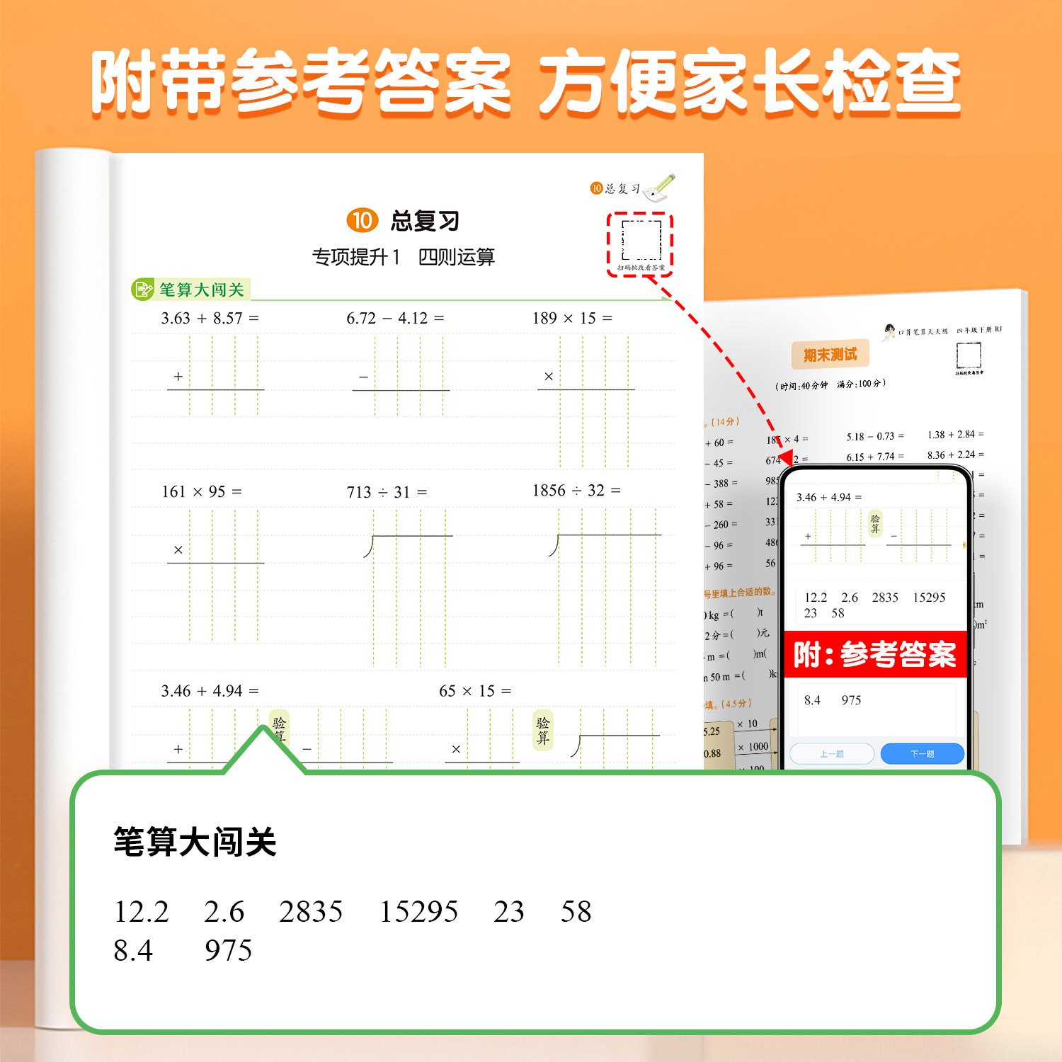📚 【2026新版】四年级数学计算题强化训练上册下册口算天天练人教版口算题卡每天100道小学4年级数学思维心速算竖式计算同步练习册