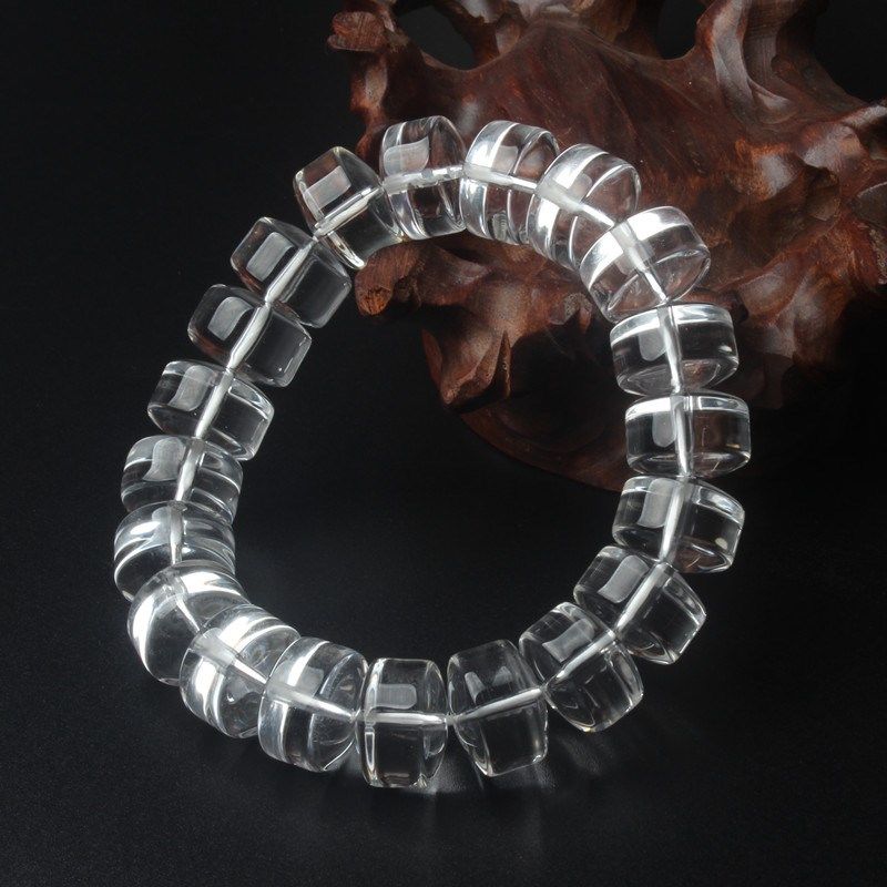 📚 5A级天然白水晶车轮珠男士手链药片珠女士佛串盘珠手串送鉴定书