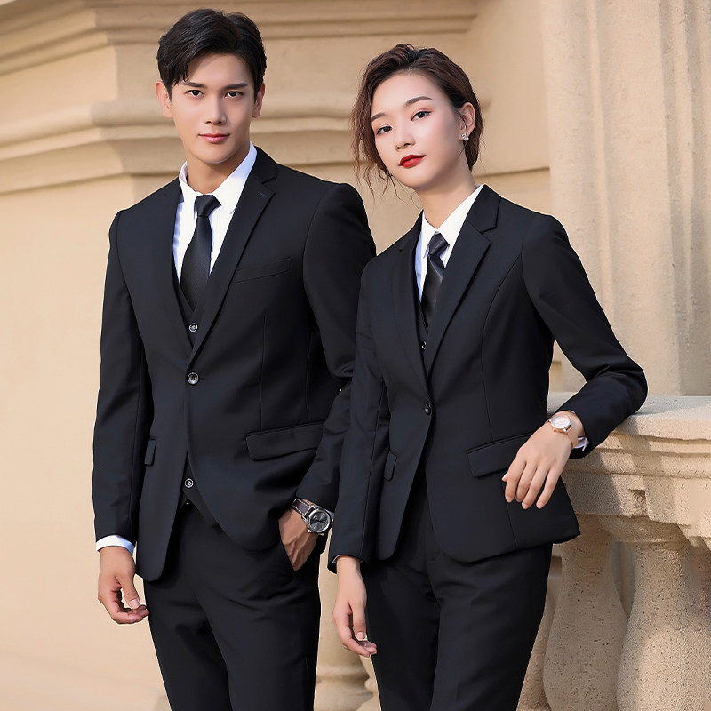 📚 西装套装男女大尺码上班服银行酒店经理工作服面试商务高端黑色正