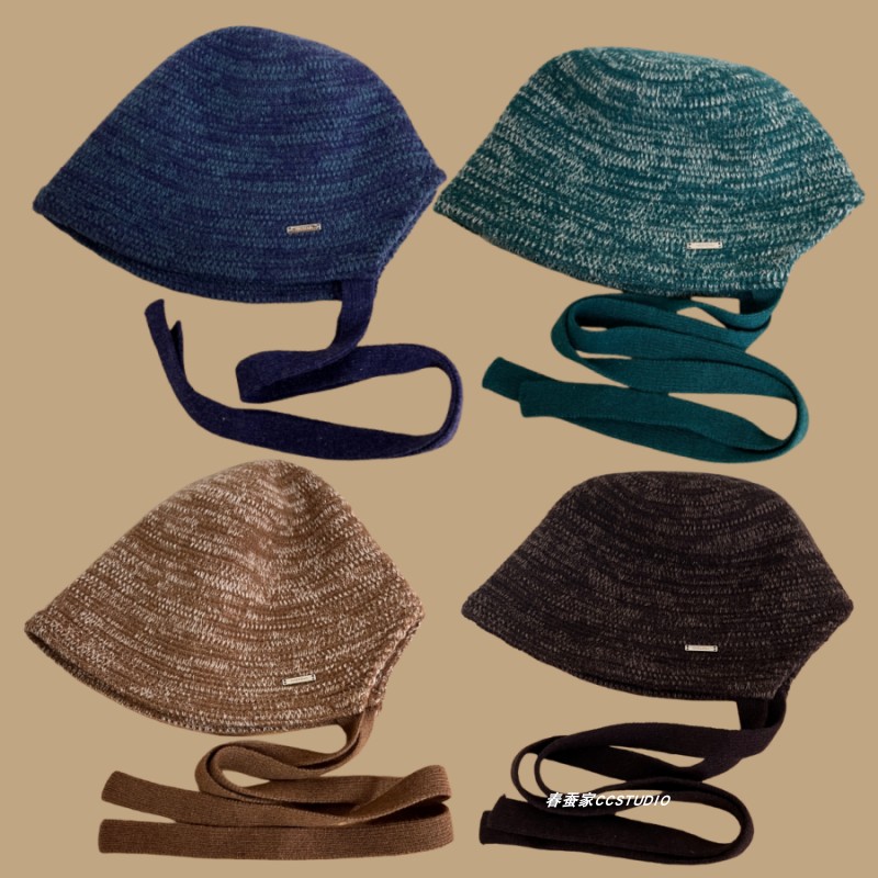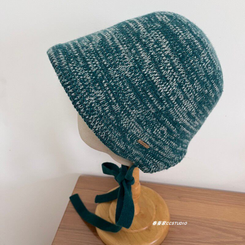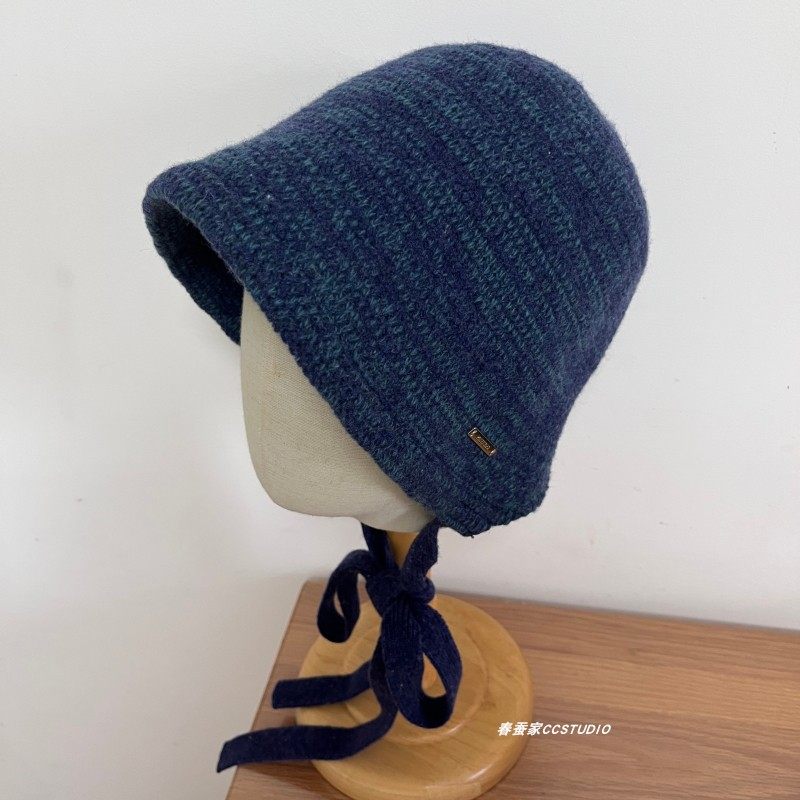 📚 2025独特超好看帽子倪妮同款羊毛针织盆帽日本大头围飘带渔夫帽女