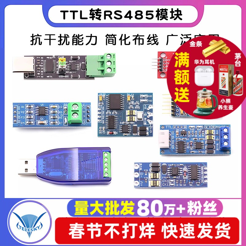 📚 TTL转RS485模块 485转串口UART电平互转通讯自动流向控制自动双向