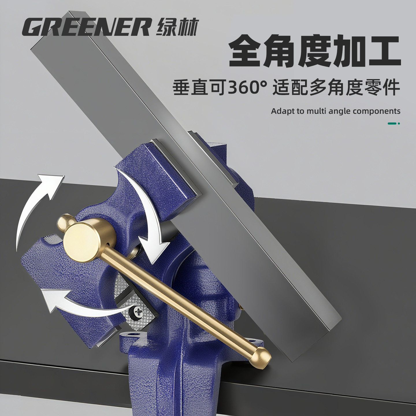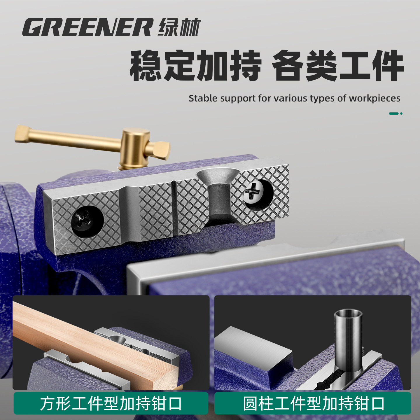 📚 绿林精密台钳双钳口工业级旋转万向多功能平口桌钳小型台虎钳木工