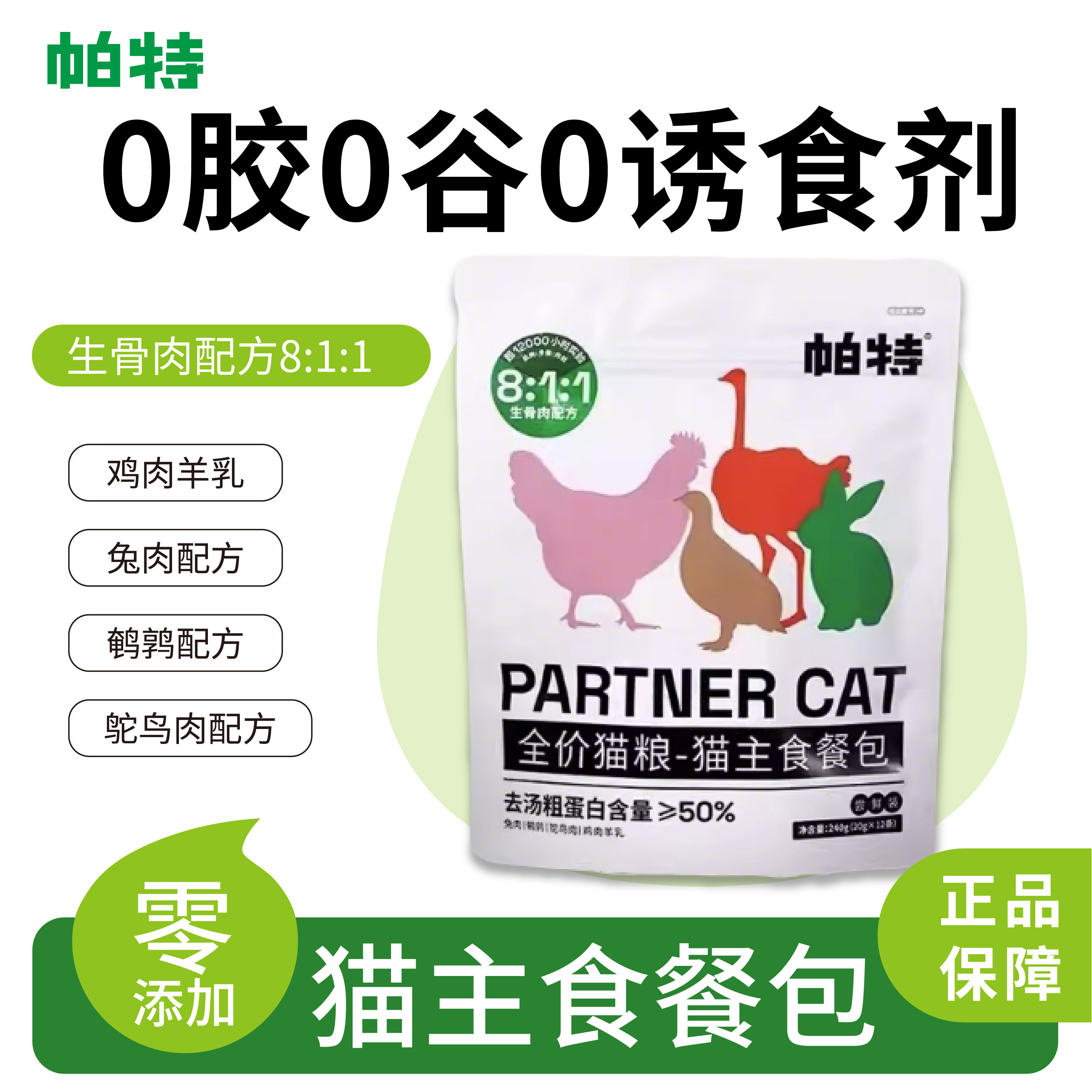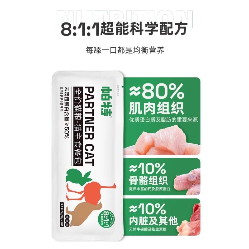 📚 帕特主食猫条成猫幼猫通用0胶0诱食剂餐包非猫零食全价湿猫粮240g