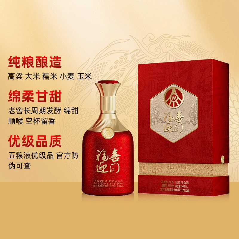📚 五粮液国产白酒福喜迎门 红福单支52度500ml*6整箱装