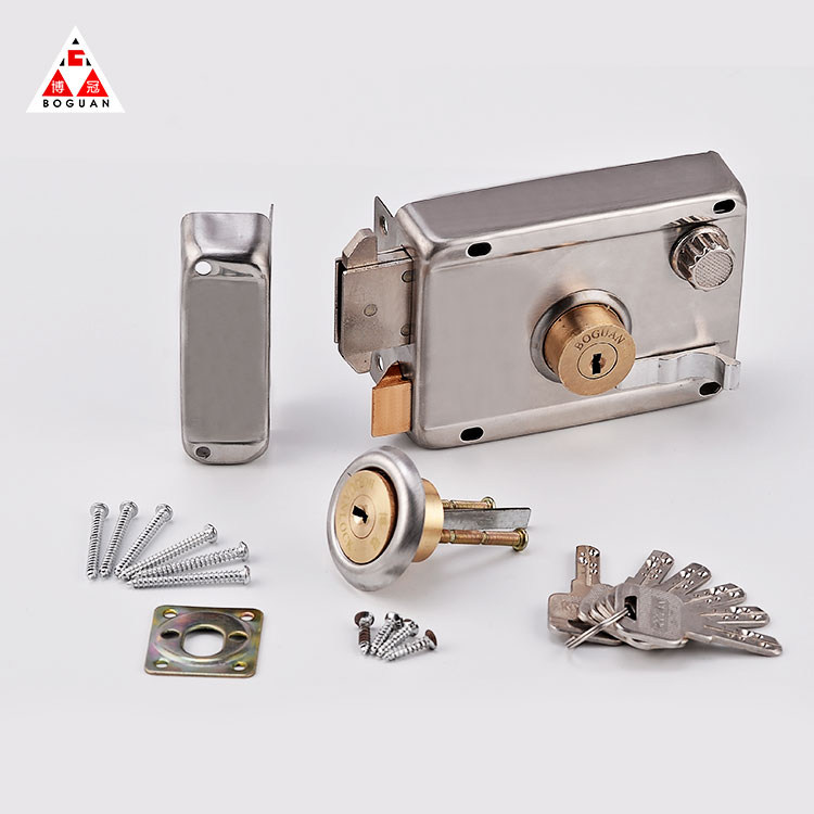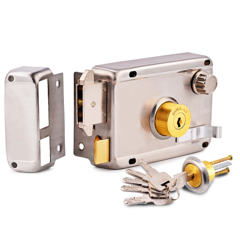 📚 双钩舌外装门锁304不锈钢老式大铁门锁防盗锁大门三舌锁三保险锁