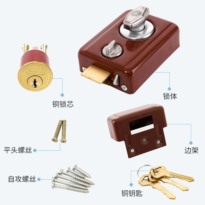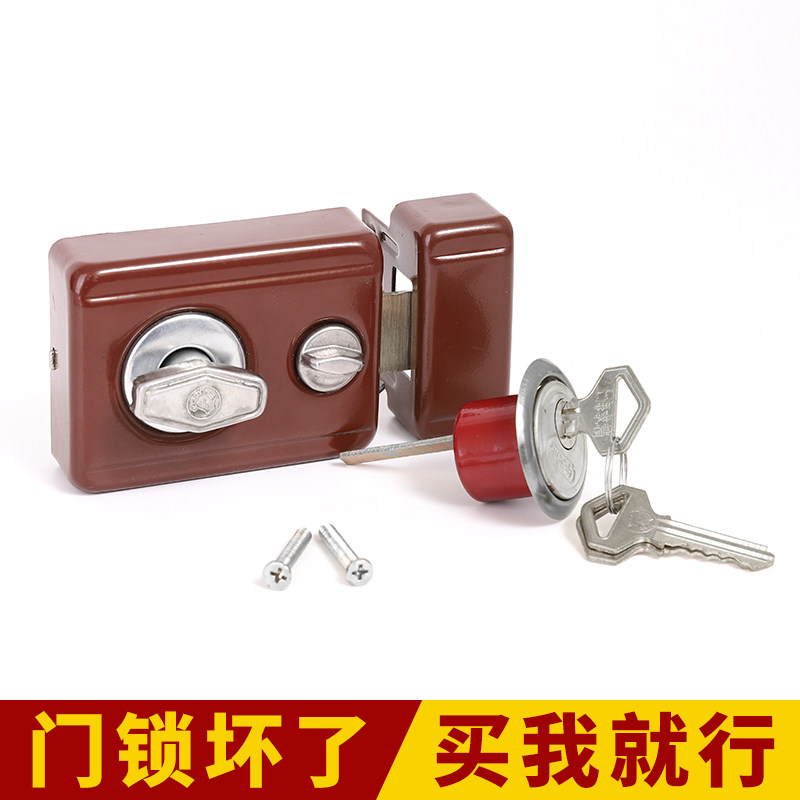 📚 老式房门锁三保险牛头锁牛头牌弹子门锁三保险锁外装暗锁木门门锁