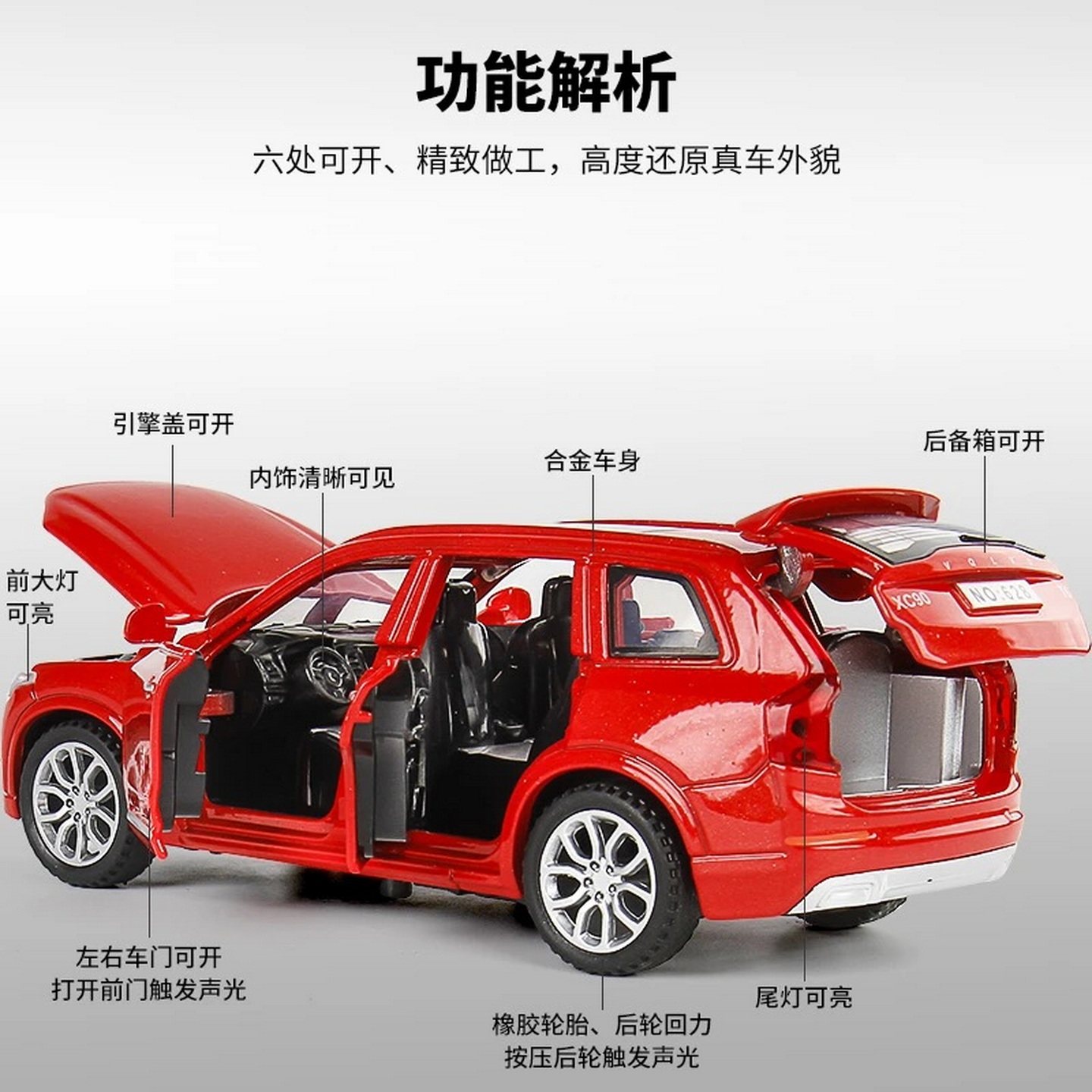 📚 沃尔沃xc90合金汽车模型SUV越野车声光回力6开门玩具车模收藏摆件
