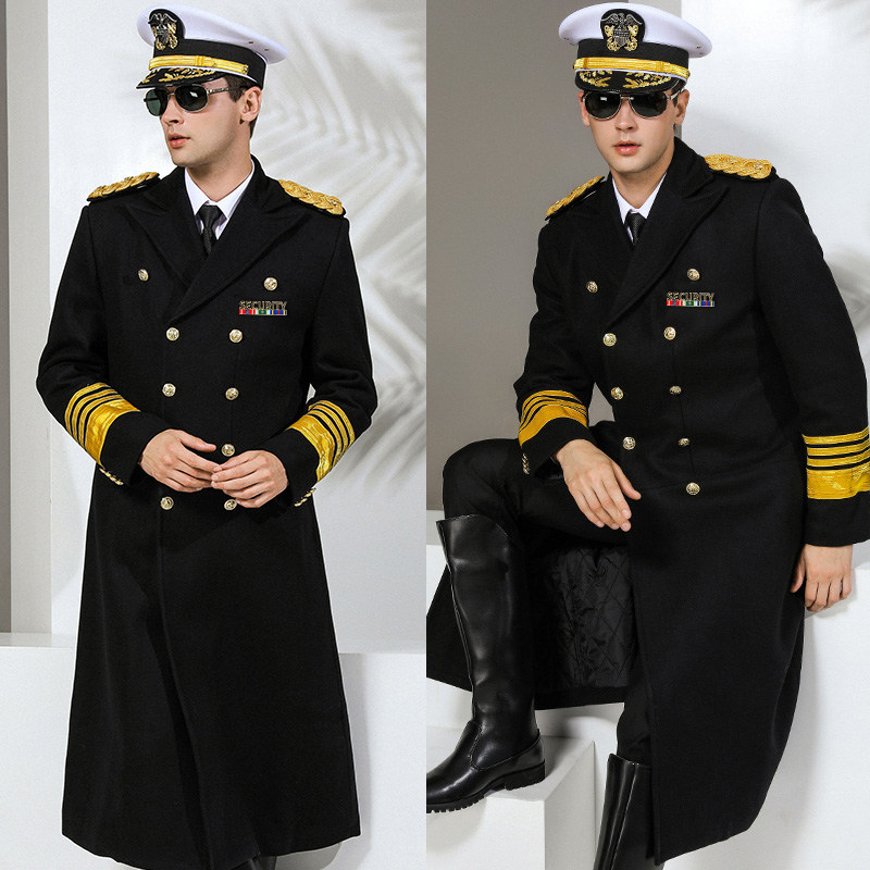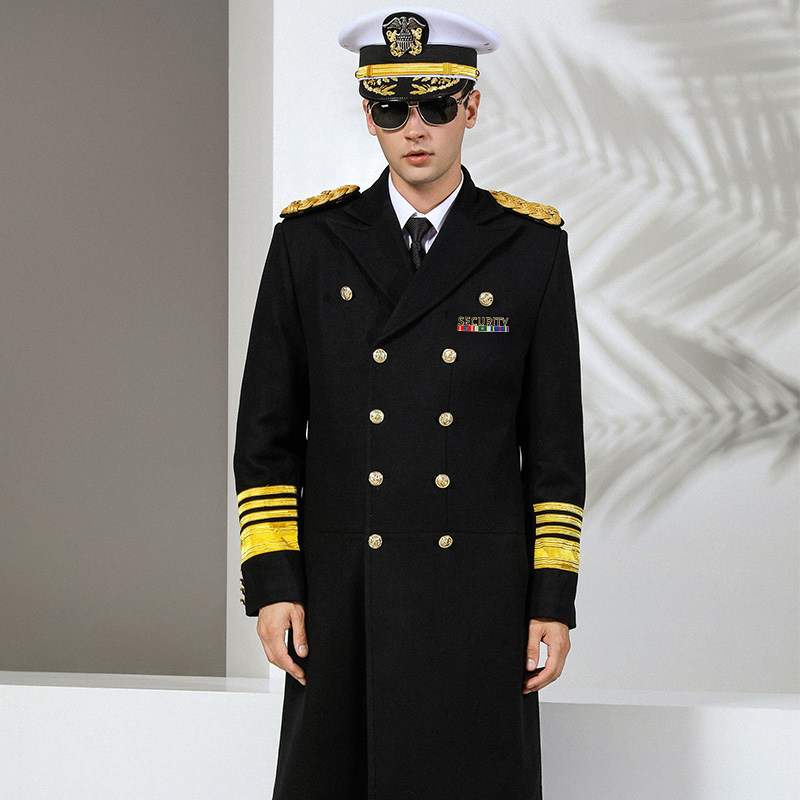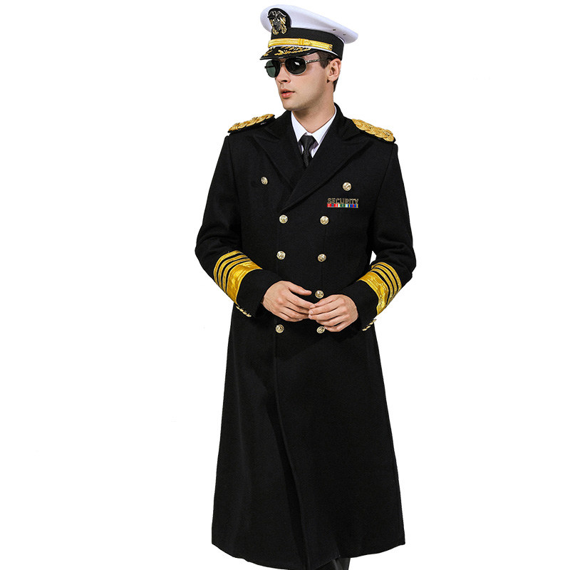 📚 航空机长飞行员外套海员制服长款呢子大衣船长风衣保安物业礼宾服