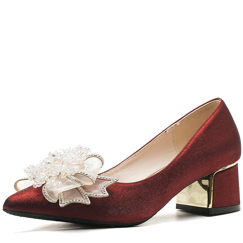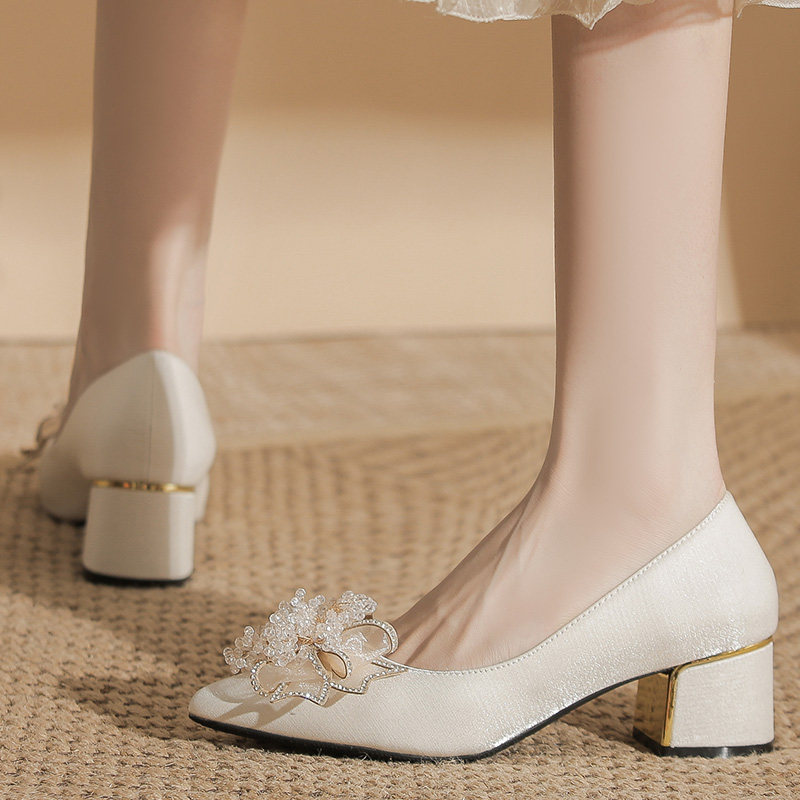 📚 婚鞋大码41一43脚宽旗袍婚礼妈妈白色高跟鞋粗跟喜婆婆婚宴鞋子秋